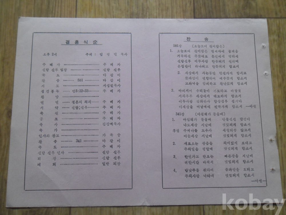 1977년 부산 제일예식장 결혼예배 주보