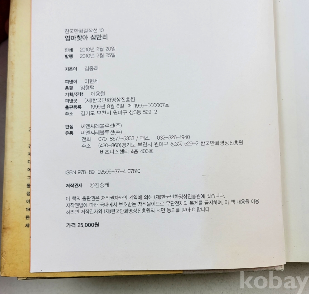 물 품 명 | 김종래 / 엄마찾아 삼만리 / 한국만화걸작선(10) / 2010년 초판 / 한국만화영상진흥원, 만화규장각 |