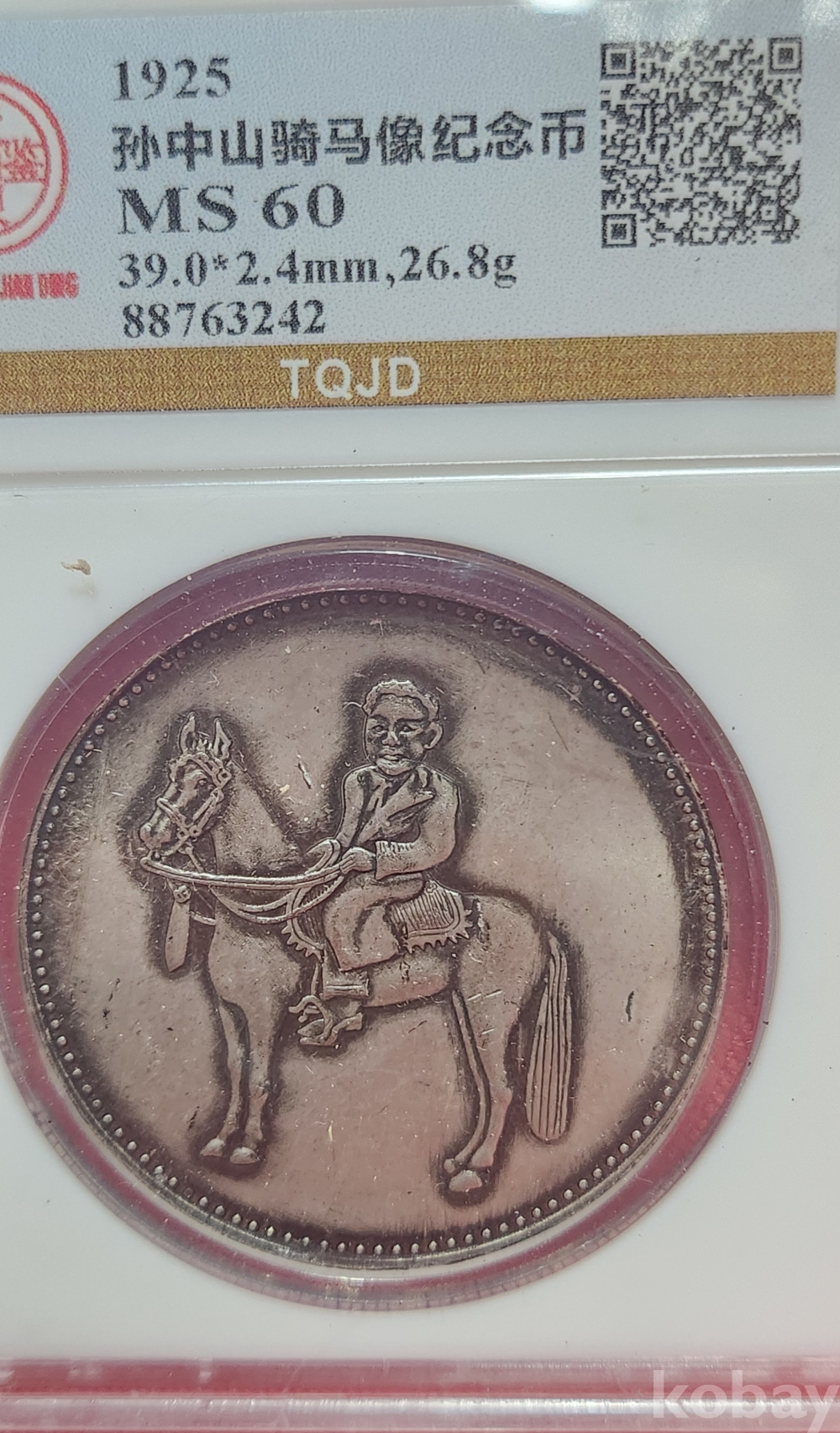 1925년 큐알코드(QR CODE)가 함께하는 은색 중화민국 개국 기념 밀봉된 상태입니다,