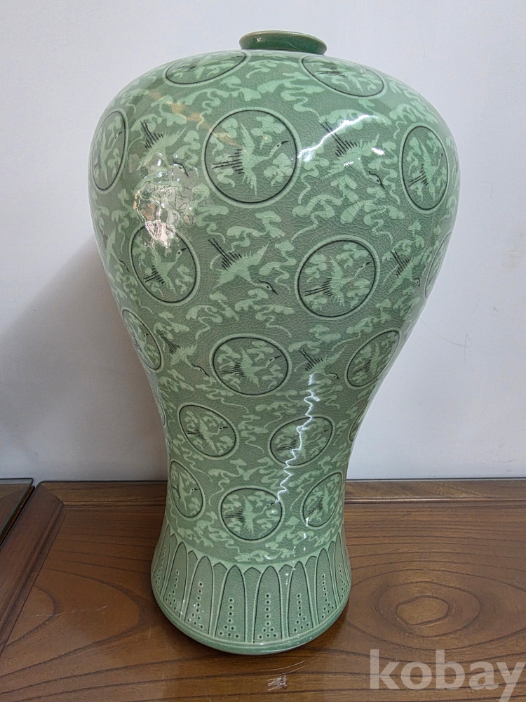 운학문(구름과 학) 문양이 반복적으로 상감 처리되어 있으며,