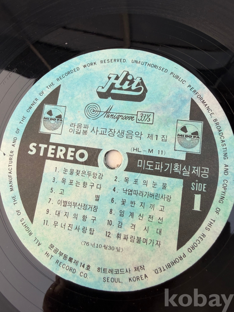 1976년 제작된 라음파 이길봉 악단 사교장 생음악 제1집 LP 입니다.