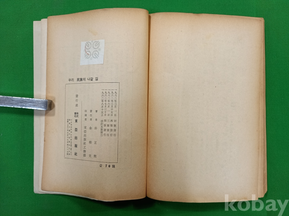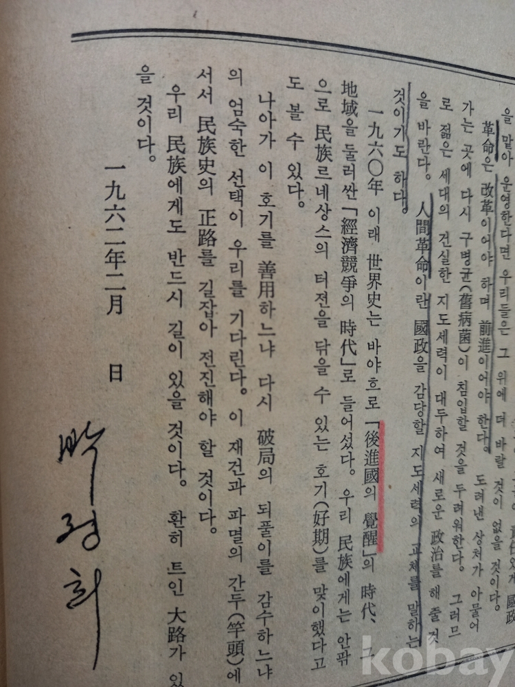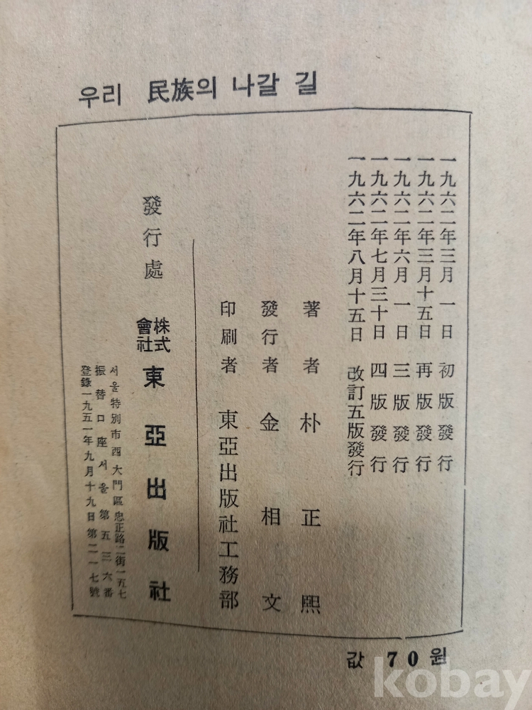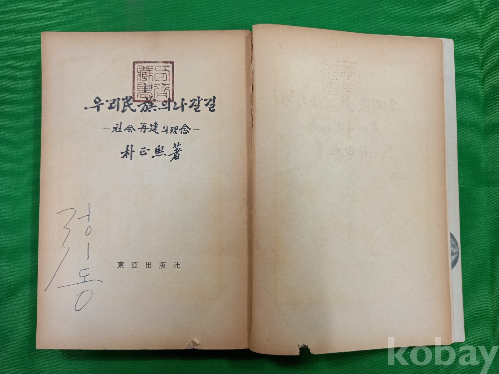 이 책은 박정희 전 대통령이 1962년에 출간한 저서 『우리 민족의 나갈 길』입니다.