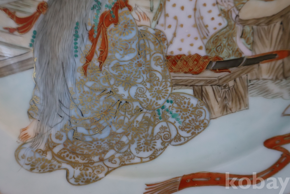 명치기의 구미 유럽 수출 도자기 접시 임니다 사무라이 칼을 주제?로한 황금 접시 임니다 섬세 정교 도공의 혼을 가진 명품 임니다