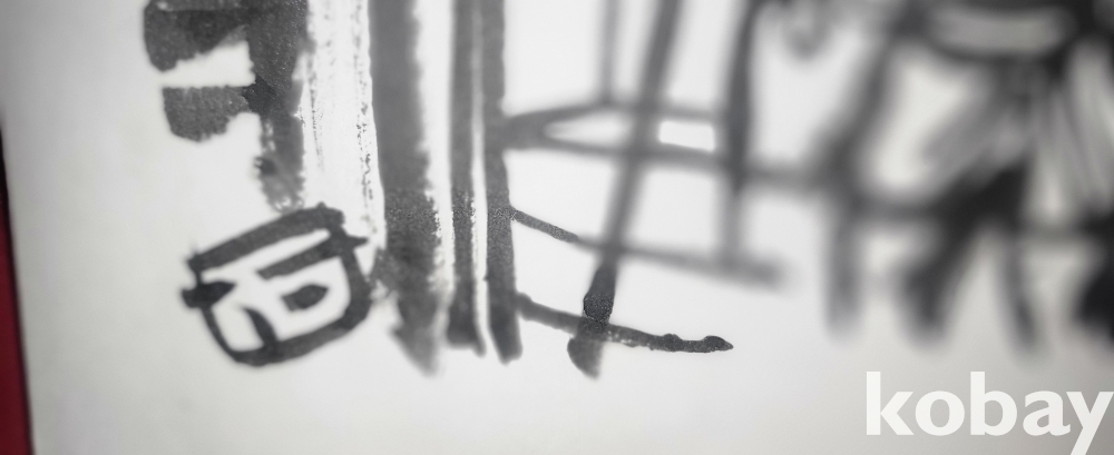 물과 먹으로 만 직접 그려진 수묵화 삽화입니다,