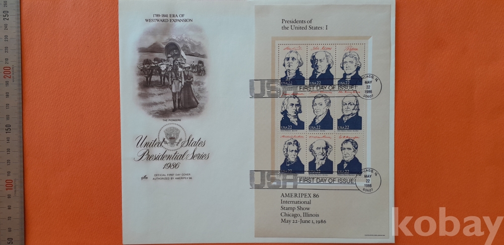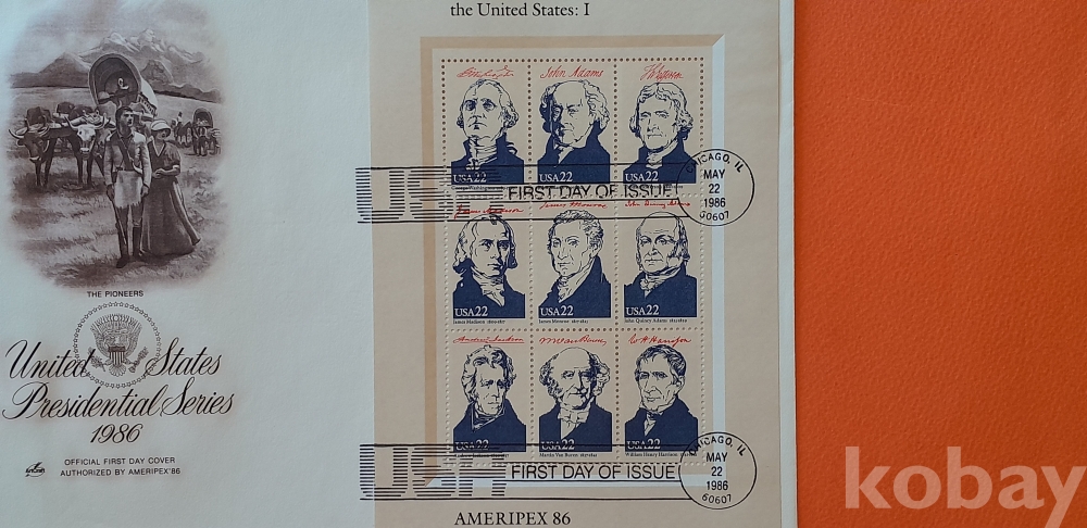 1986년 발행 미국 대통령시리즈 -1(1789년-1841년) 대형 초일봉피 입니다.