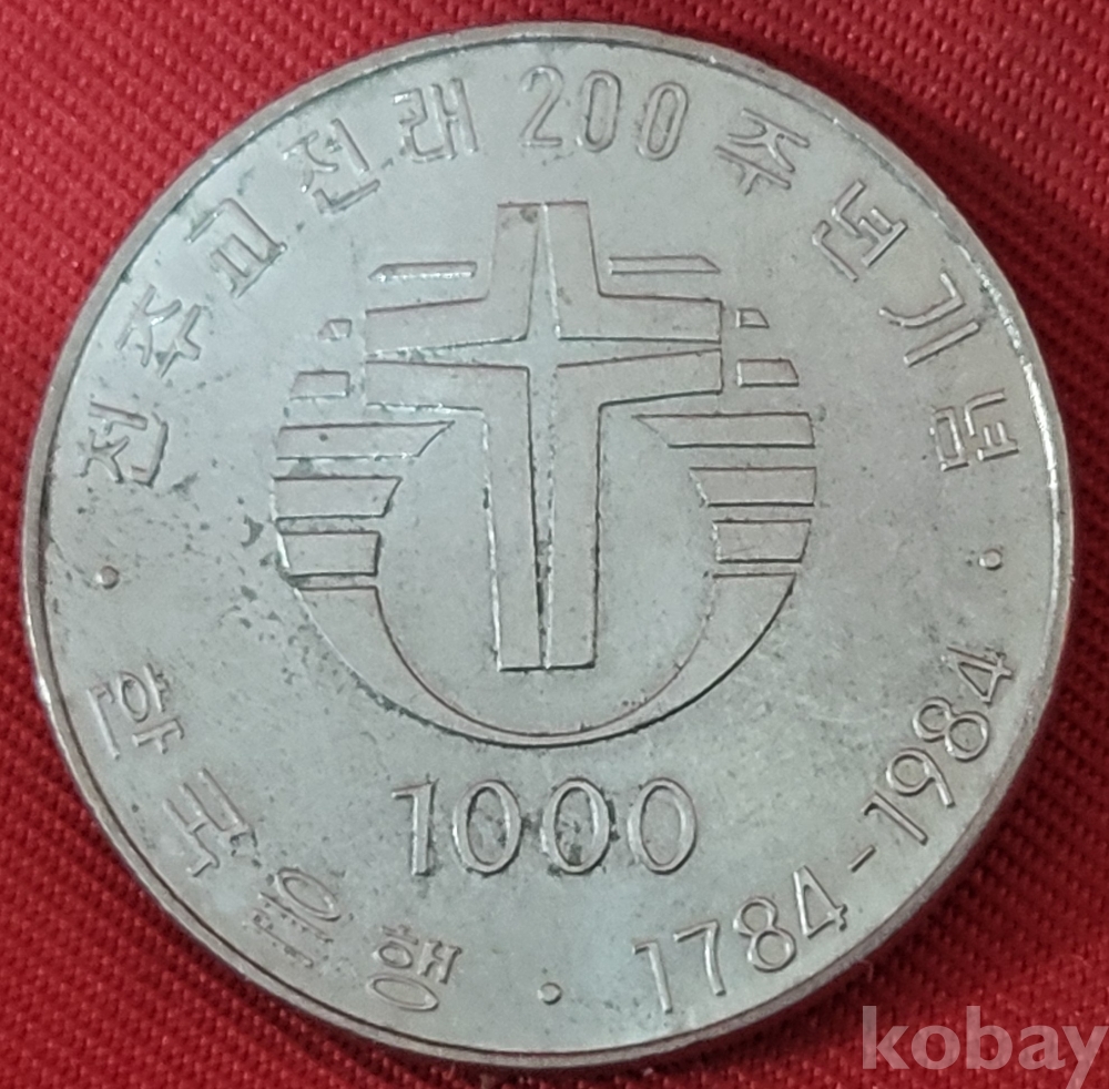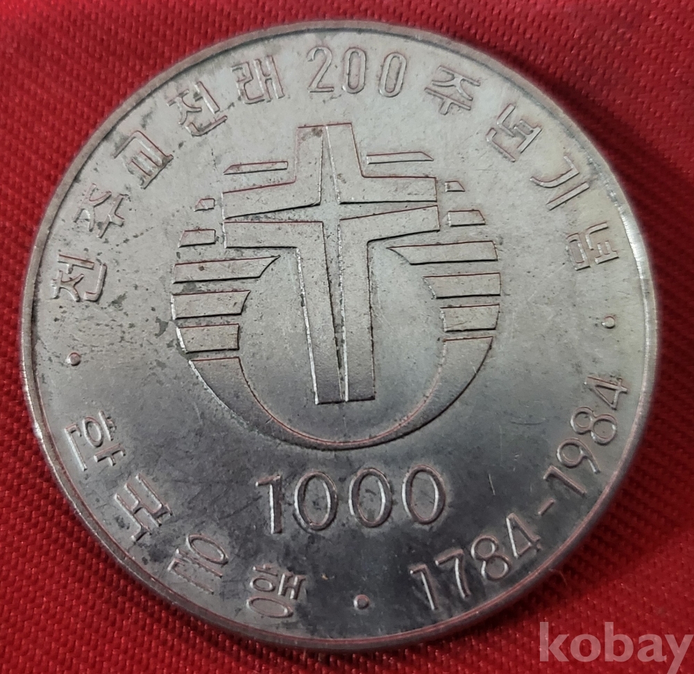 한국은행 발행 천주교 전래 200 주년 천원권 기념 주화입니다,