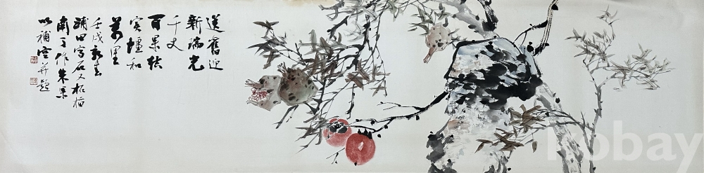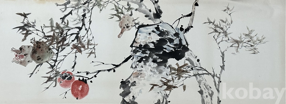 종이에 수묵과 담채로 표현한 감나무 그림으로, 번짐을 살린 먹선과 절제된 채색을 통해 감나무 가지의 흐름과 붉게 익은 감의 형태를 담담하게 담아낸 작품입니다. 여백을 넓게 활용한 세로형 화면 구성으로 가지의 움직임과 계절의 깊이를 강조하며, 붉은 감은 화면에 포인트가 되어 가을의 결실과 풍요로운 정서를 전합니다. 문인화 계열 특유의 간결한 필치와 자연스러운 색감이 조화를 이루는 작품으로, 감상용으로 무난하고 안정적인 인상을 줍니다.