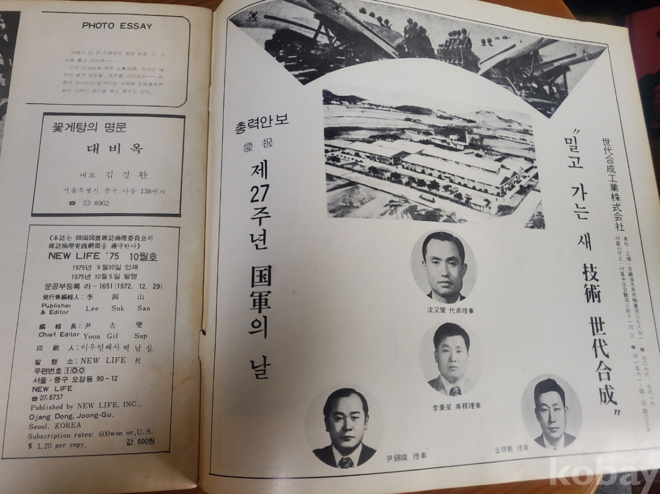 1. 뉴 라이프(NEW LIFE) 75년 10월호, 뉴 라이프사, 1975년, 74쪽, 상태 상, 사진 참조