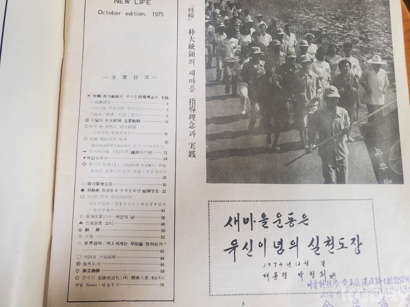 2. 내용 : 박정희 대통령과 새마을 관련 / 외신 / 한일 회담 관련 / 스포츠 관련 소식 / 24회 국전 / 해외 토픽 / 예술과 연예가 동정 / 관련 기사와 풍부한 사진으로 구성