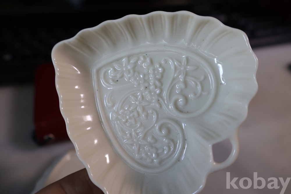 문양 디자인 섬세 정교 한 명품 도자기 2 세트 임니다 고리 형태의 요철 된 명물 임니다
