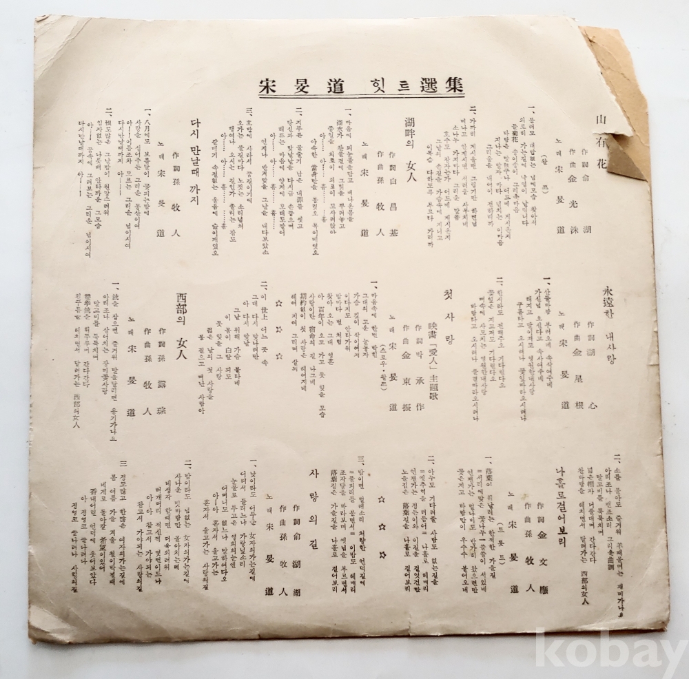 송민도 힛트선집10인치Lp/산유화,여옥의 노래