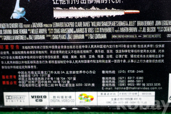 (중국제작 VCD) 로미오와 줄리엣 - 레오나르도 디카프리오 / 클레어 데인즈...주연