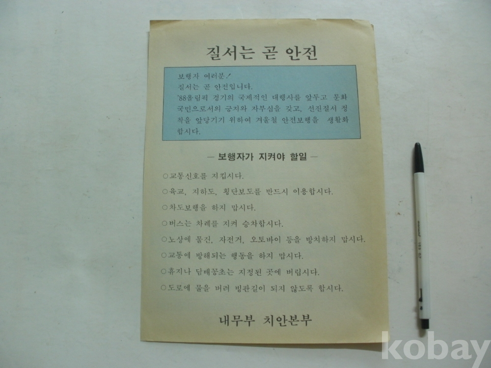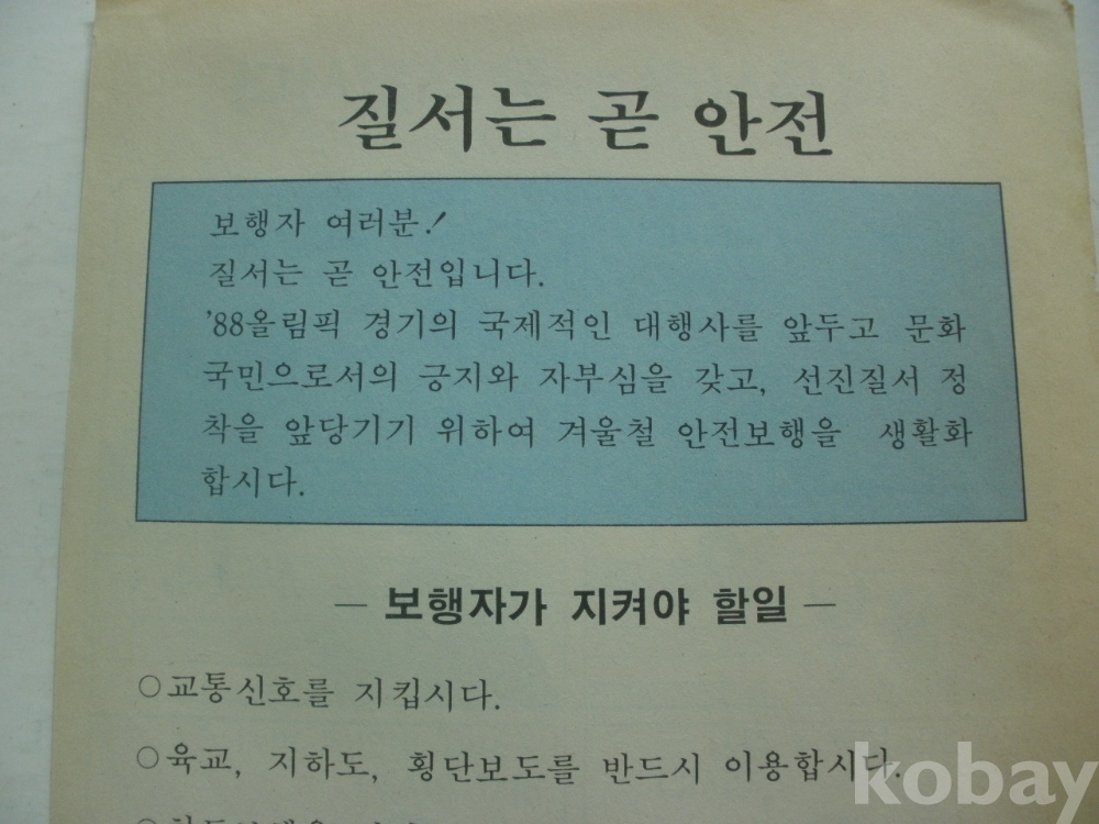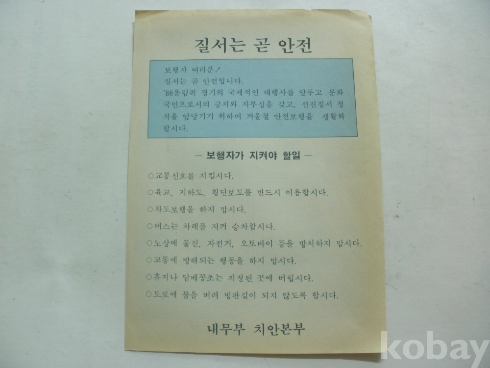 다음 사항은 꼭 지킵시다 (보행자) - 뒷면, 질서는 곧 안전 (내무부 치안본부)