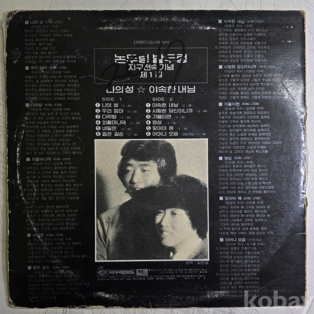 | 자켓상태 | VG : 주름, 접힘, 모서리 찢김 다수 | 음반상태 | VG : 생활 기스 다수, 가벼운 노이즈 존재 | 발매정보 | 초반 | 가사지여부 | 무 |
