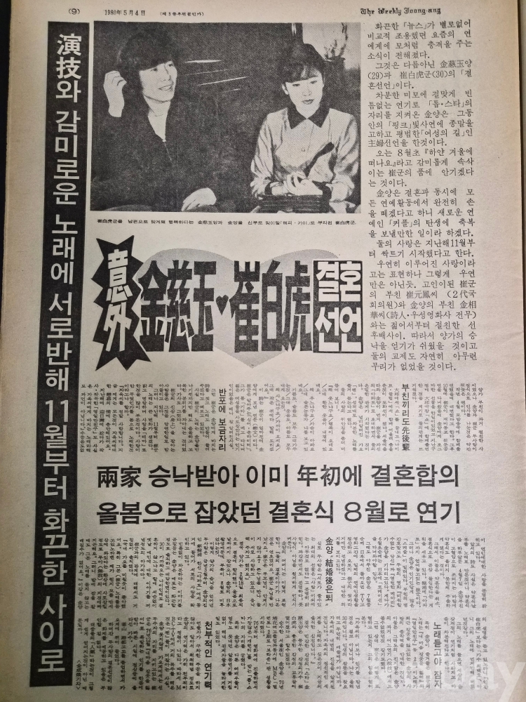 [추억의 주간지 시리즈] / [주간 중앙] / 1980.5.04일 / 표지 탤런트 김자옥양