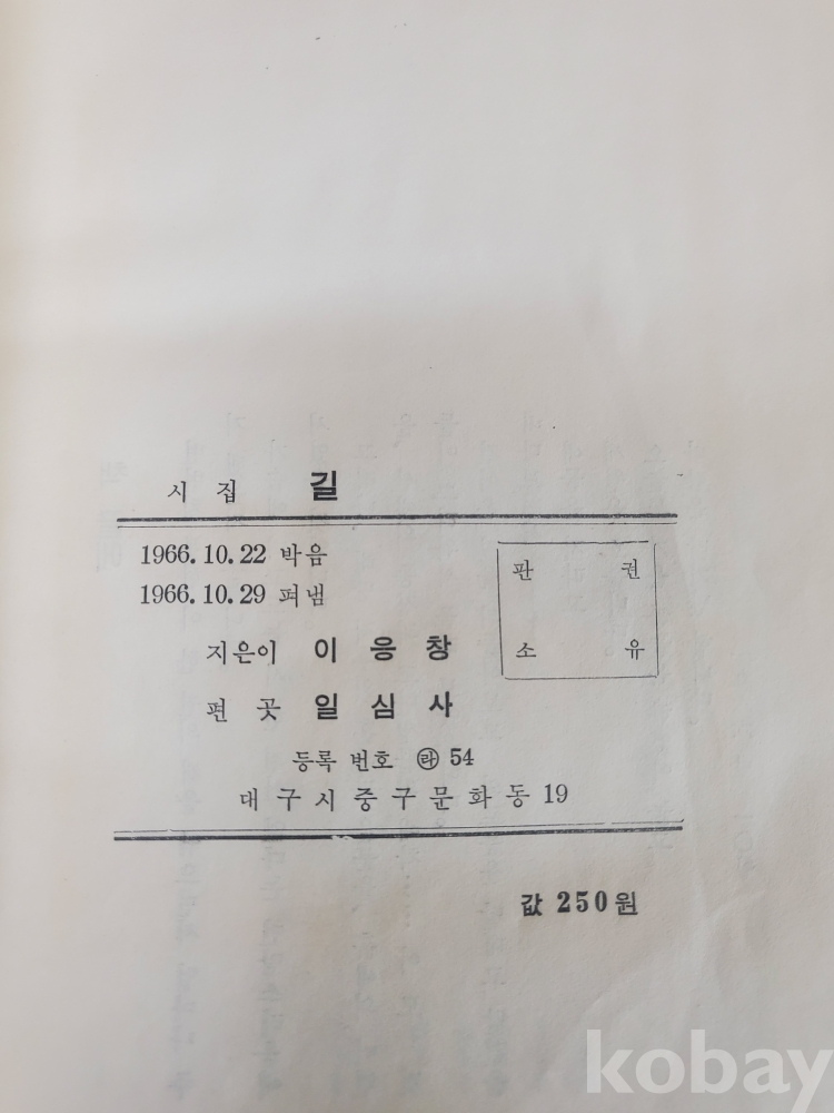 1. 길, 이응창, 일심사, 1966년, 281쪽, 사진 참조