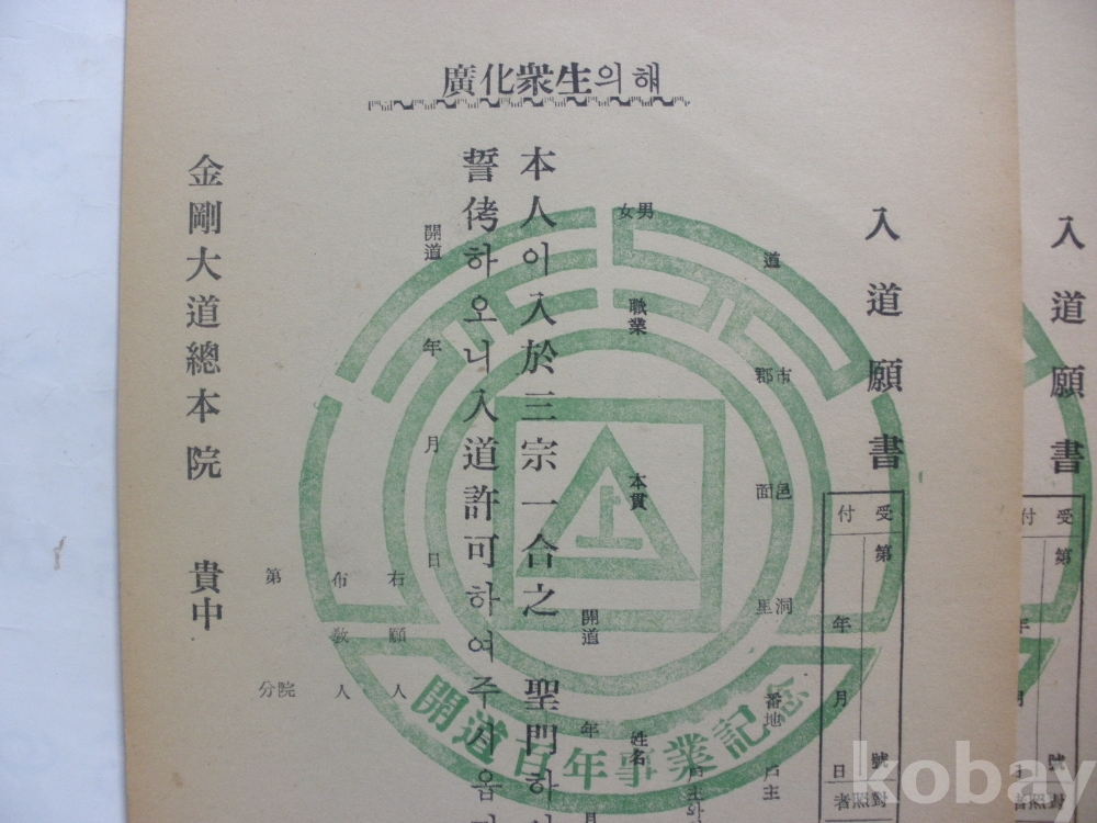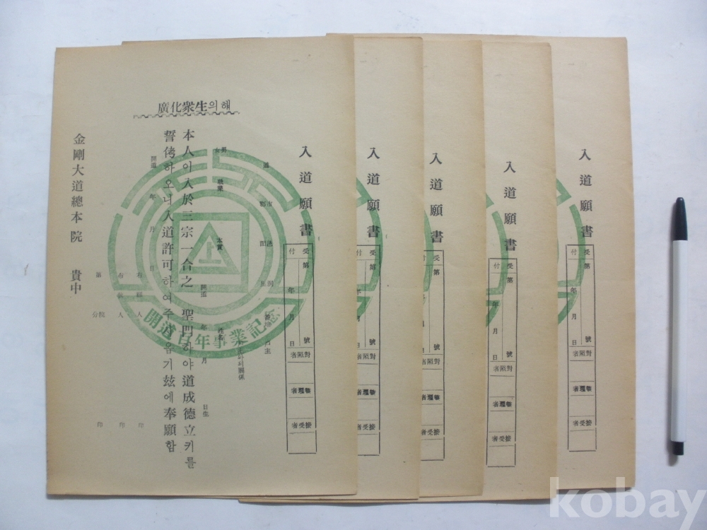 금강대도 입도원서 - 광화중생의 해 (5매 일괄)