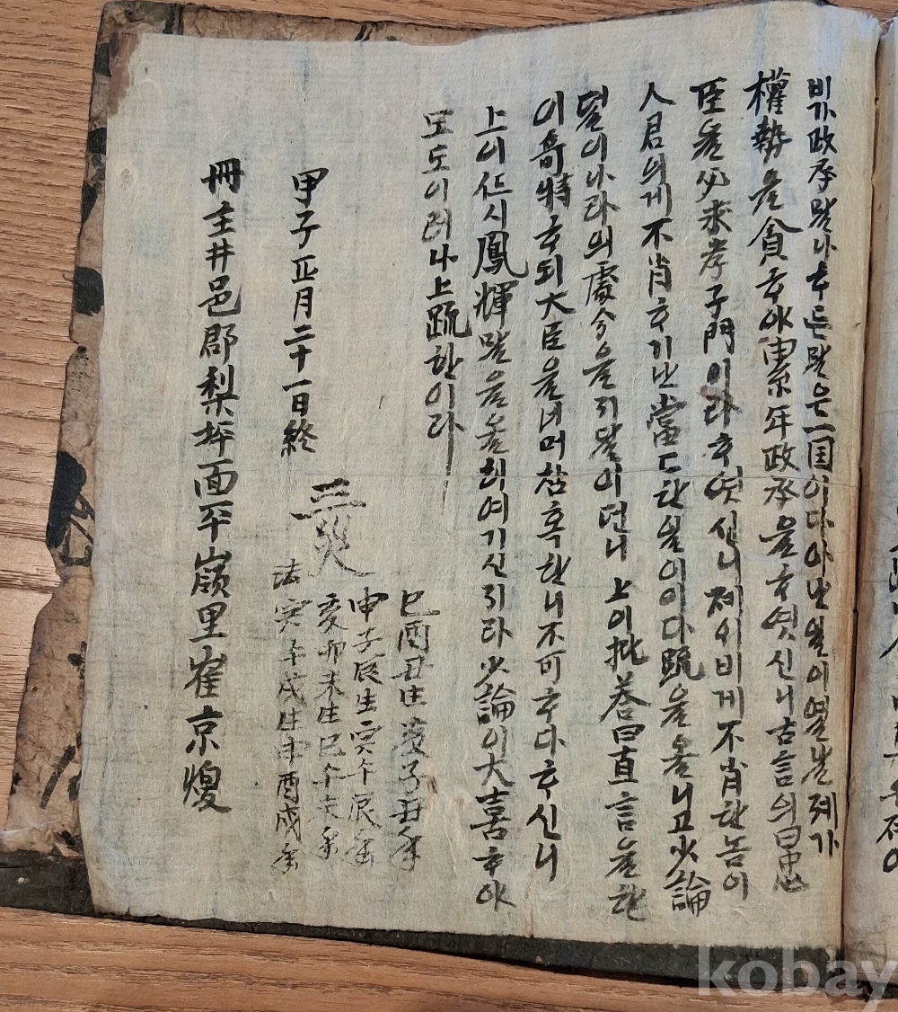 甲子 正月 二十一日 終(갑자 정월 이십일일)