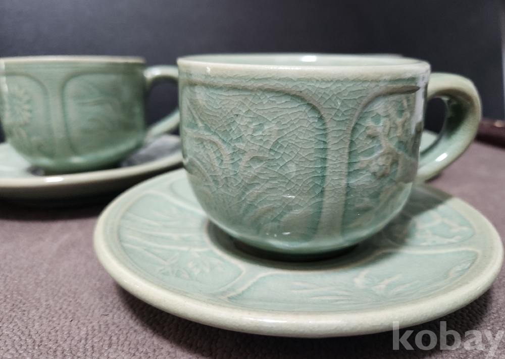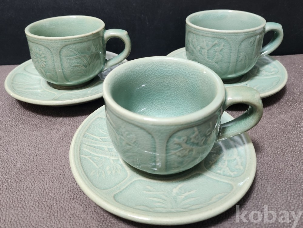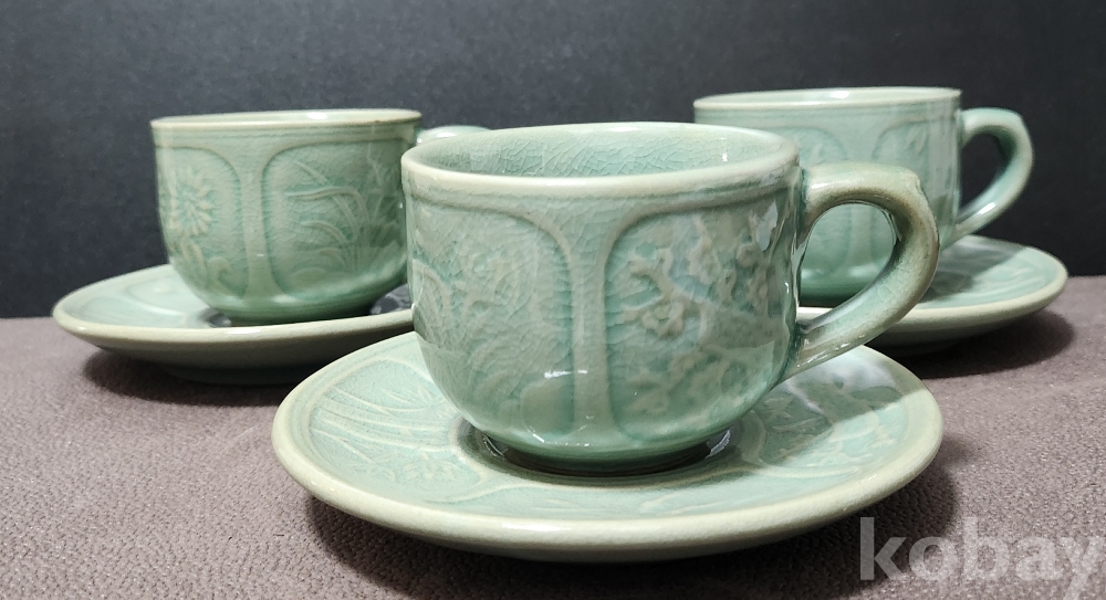 찻잔 6 x 10.5 x 7.6 받침대 2 x 13 x 13