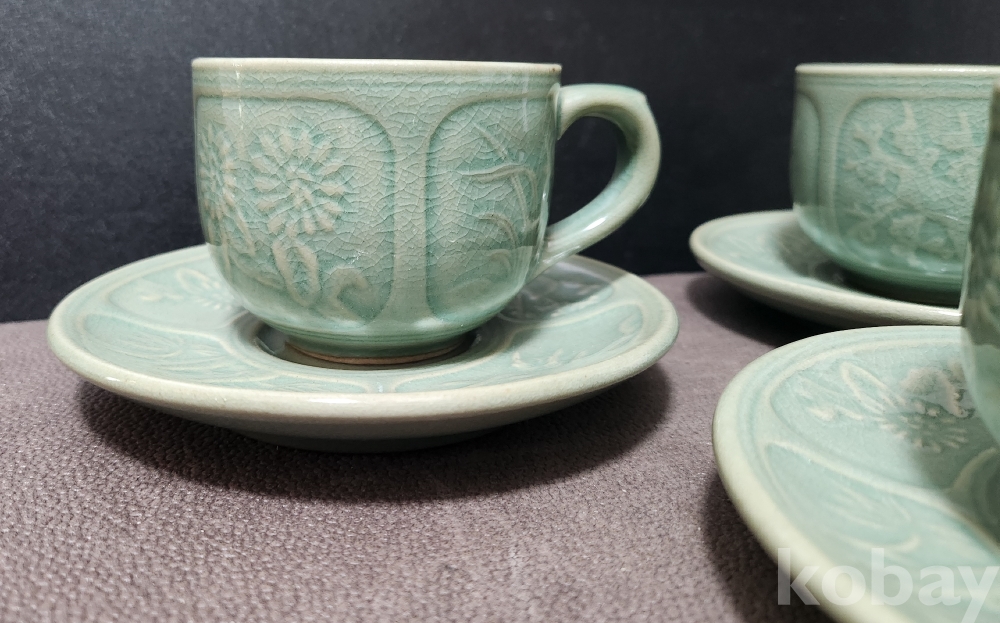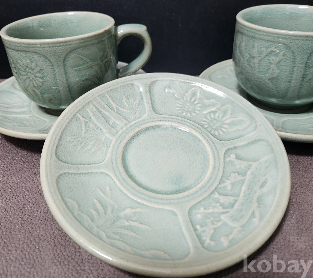 청자명인 "선봉[鮮棒] 김영근"도예가의 < 청자음각사군자문 靑瓷陰刻四君子紋 >