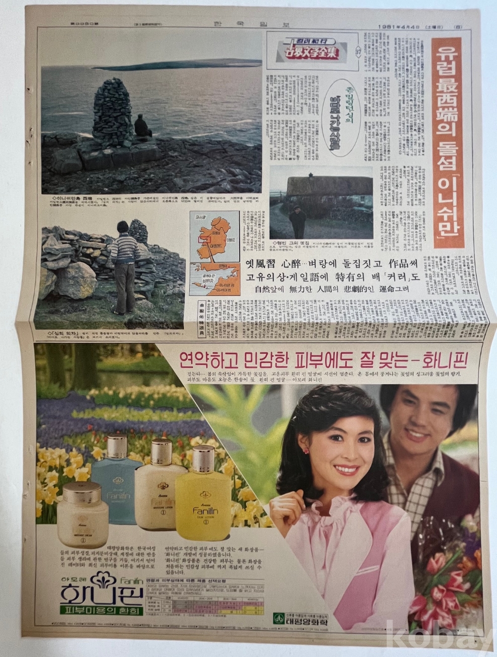 1981년 신문광고가 실린 한국일보 낱장입니다.