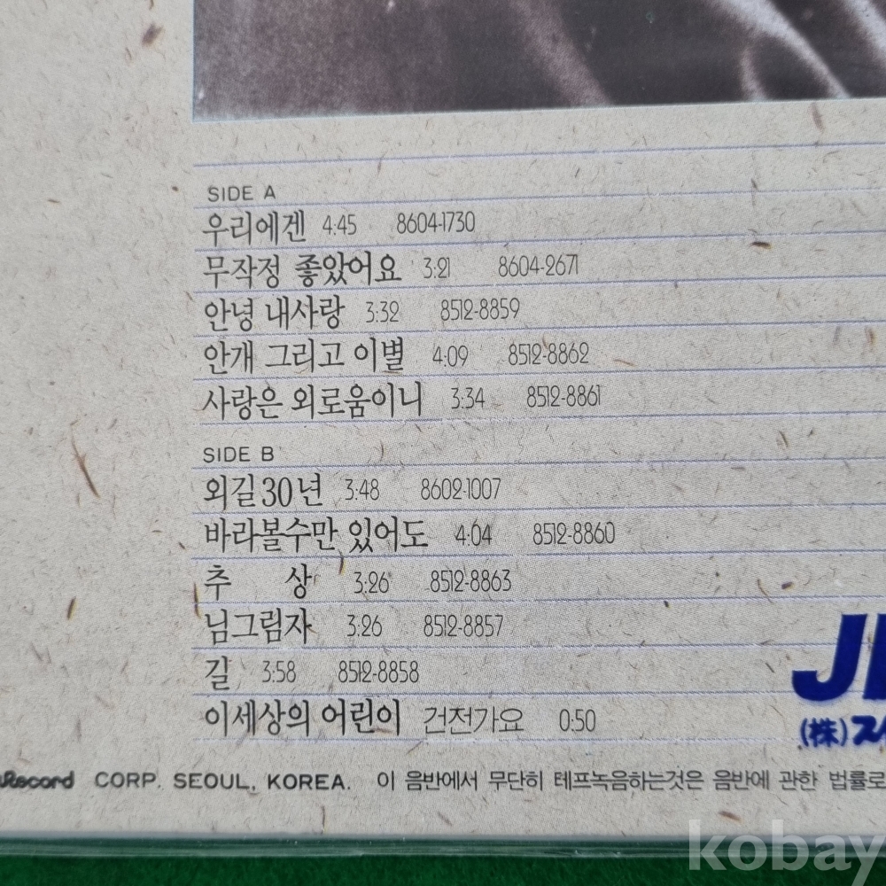 | 자켓상태 | SS : 미개봉, 손상 없음 | 음반상태 | SS : 미개봉 상태 | 발매정보 | 초반 | 가사지여부 | 유 |