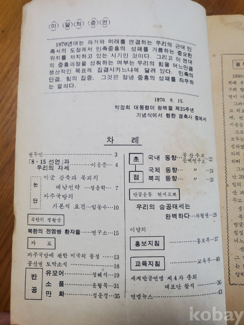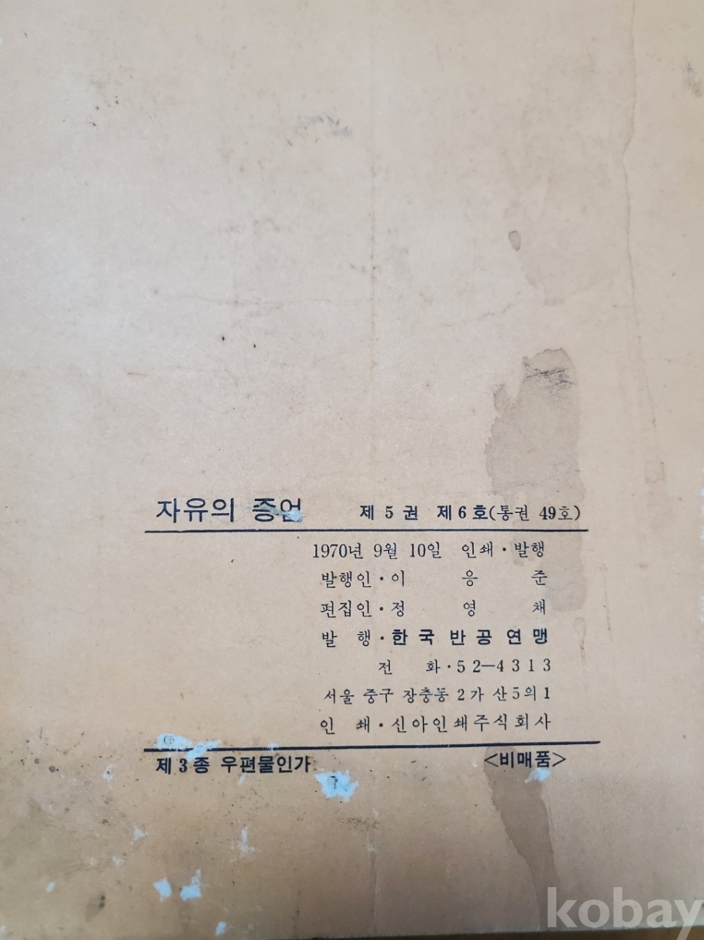 1. 자유의 증언 통권 49호, 한국반공연맹, 1970년, 40쪽, 비매품, 상태 상, 사진 참조