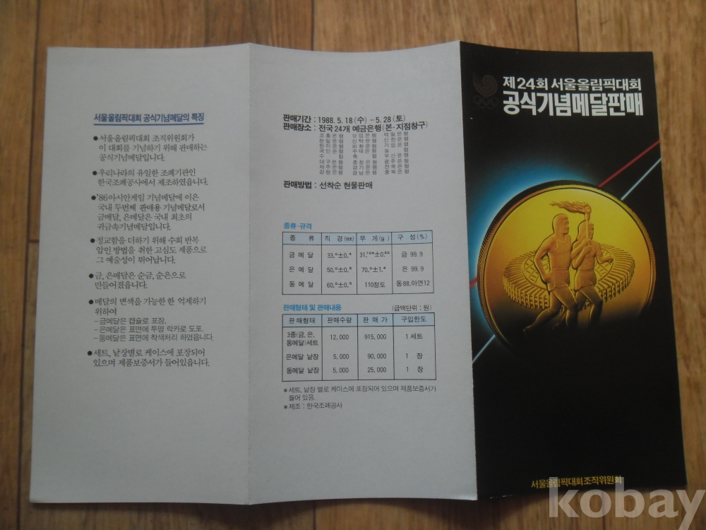 제24회 서울올림픽대회 공식기념메달판매 리플릿