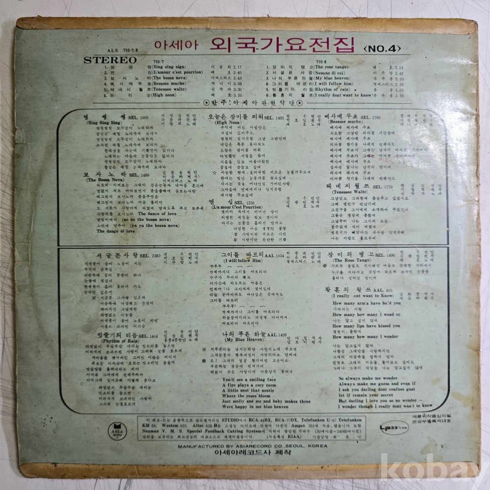 | 자켓상태 | VG : 주름, 접힘, 모서리 찢김 다수 | 음반상태 | VG : 생활 기스 다수, 가벼운 노이즈 존재 | 발매정보 | 초반 | 가사지여부 | 무 |