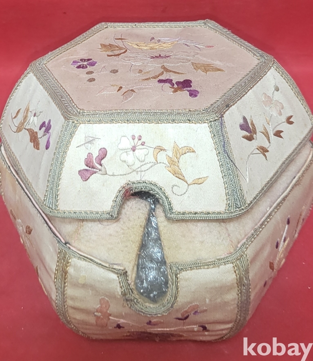 조선시대 자수로 완성된 꽃문양 6각 함으로 박물관 급입니다,