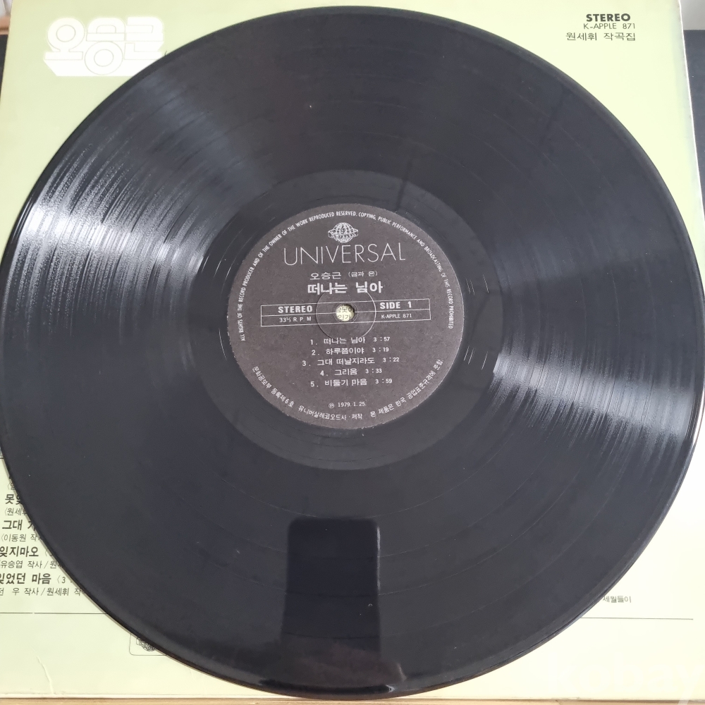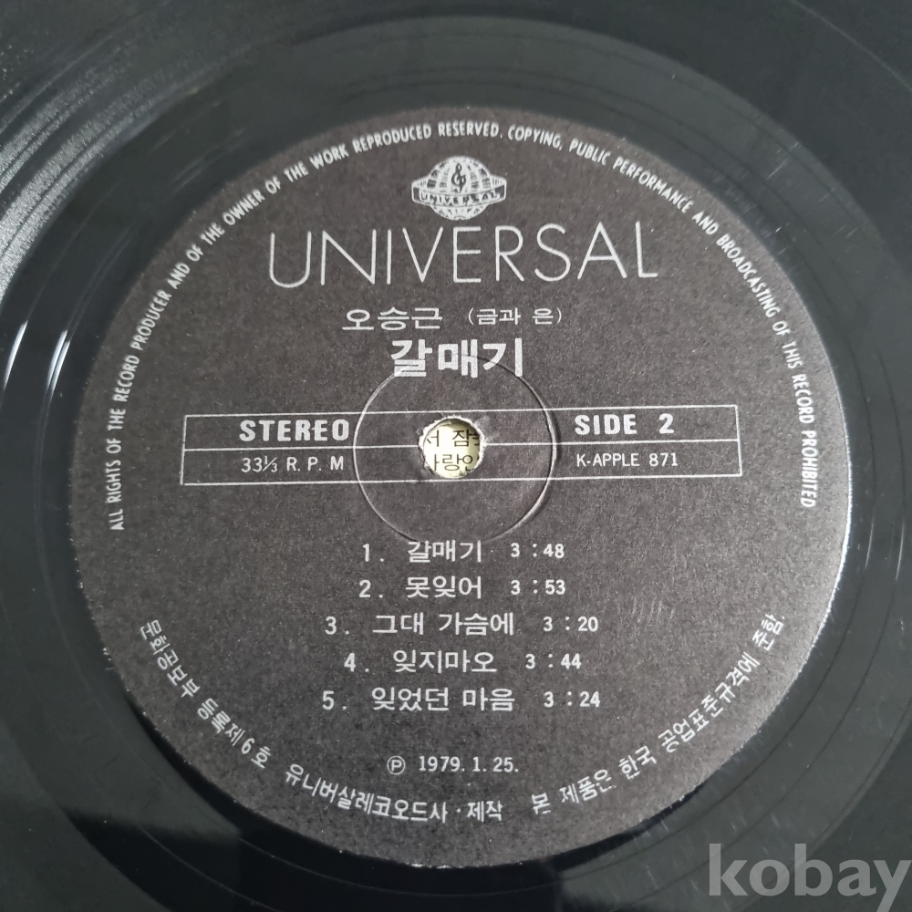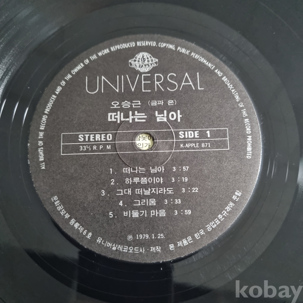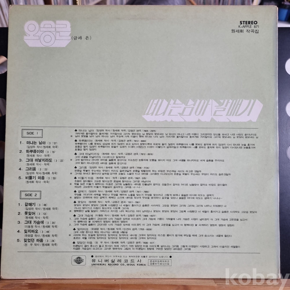 (희귀음반) 오승근(금과 은) [떠나는 님아, 갈매기] 유니버살