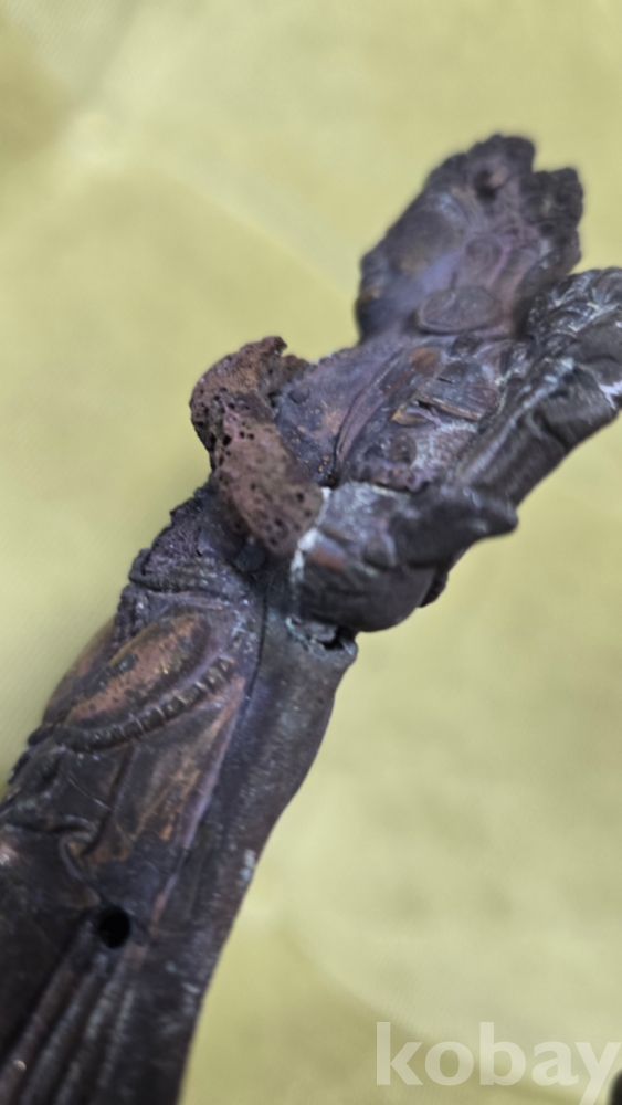 사진에서 보시다시피 한쪽 팔은 부러져서 없는 상태이고, 남은 한쪽 팔마저도 기나긴 세월 속에 삭고 삭아서 구멍이 송송송 뚫려 있을 정도로 부식이 진행되었습니다.