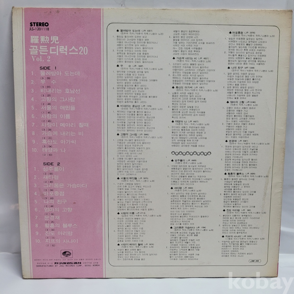 | 자켓상태 | EX : 약간의 마모, 모서리 찢김 존재 | 음반상태 | VG : 생활 기스 다수, 가벼운 노이즈 존재 | 발매정보 | 초반 | 가사지여부 | 무 |