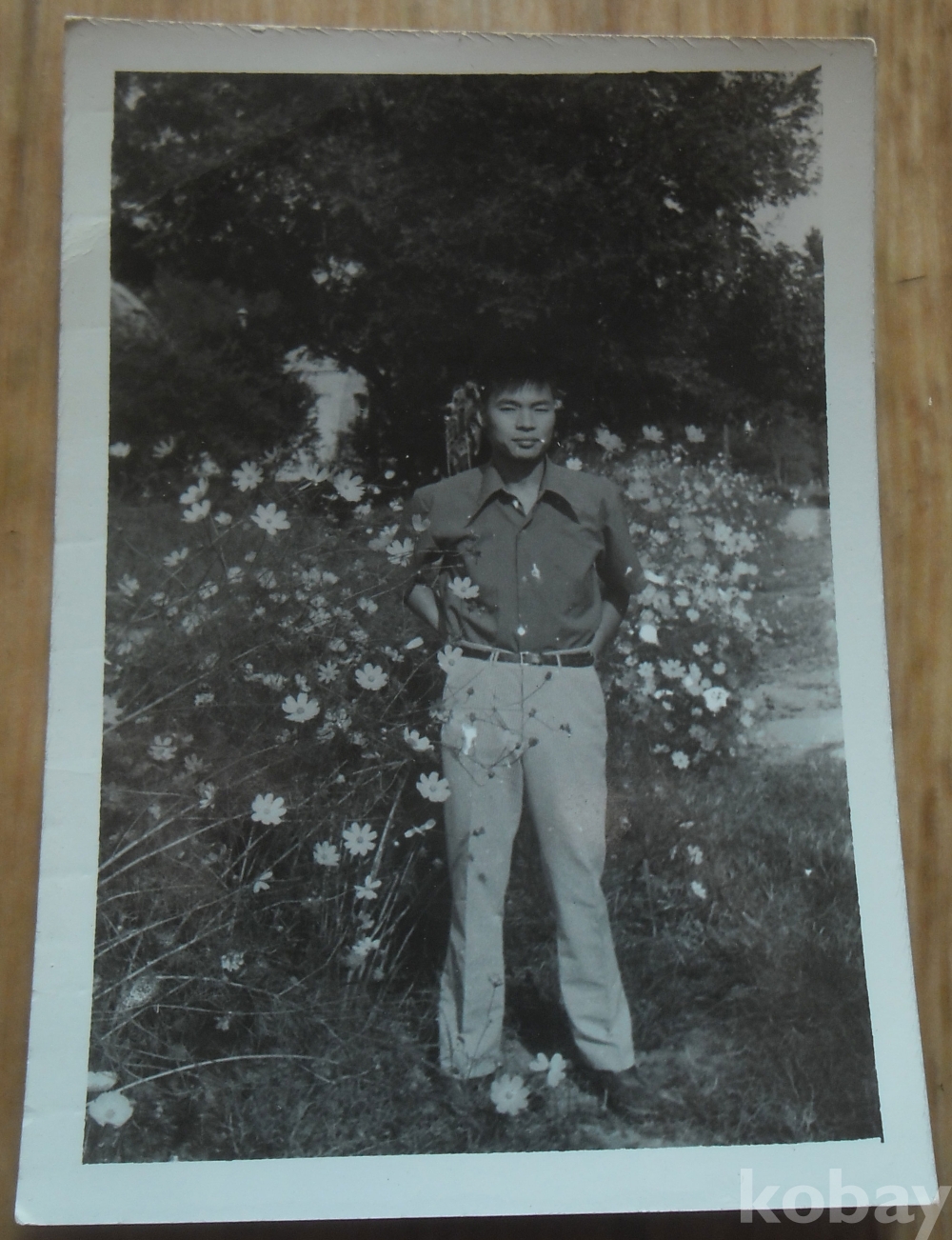 흑백사진: 코스모스 꽃길에서