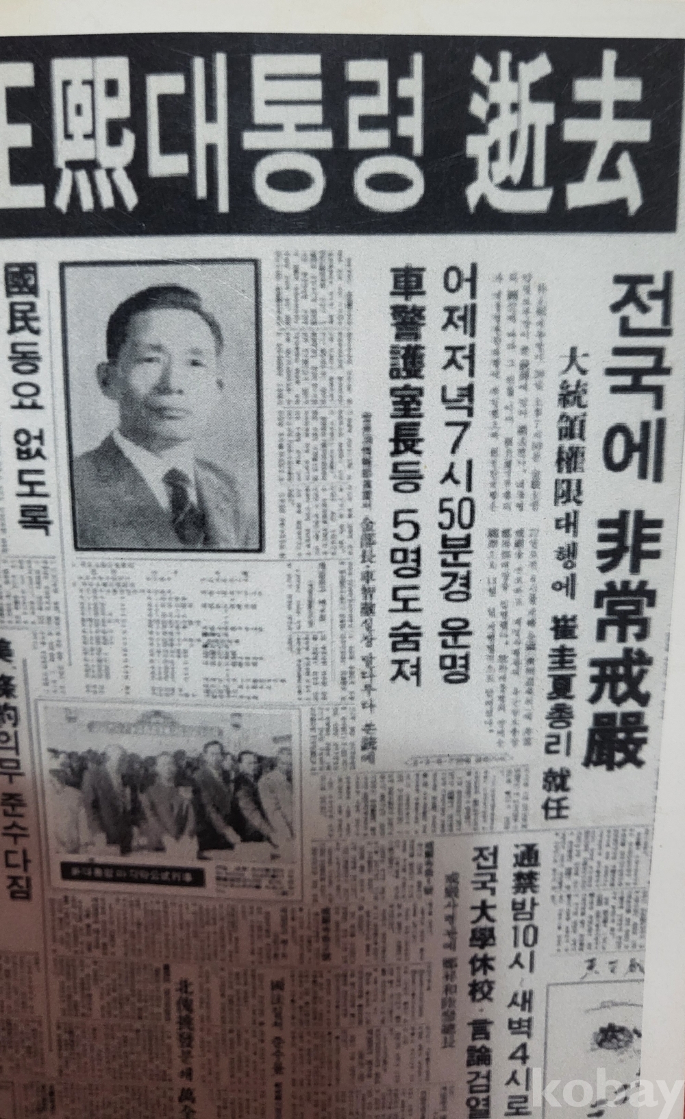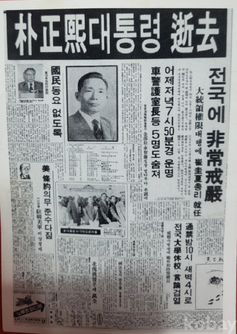 박정희 대통령 서거와 전국에 비상계엄 (非常戒嚴)신문을 찰영 명장면 흑백 사진입니다,