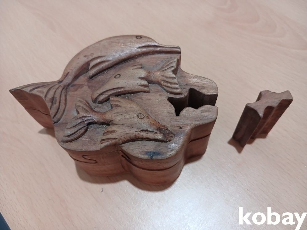 돌고래 모양의 나무 조각 함 입니다.