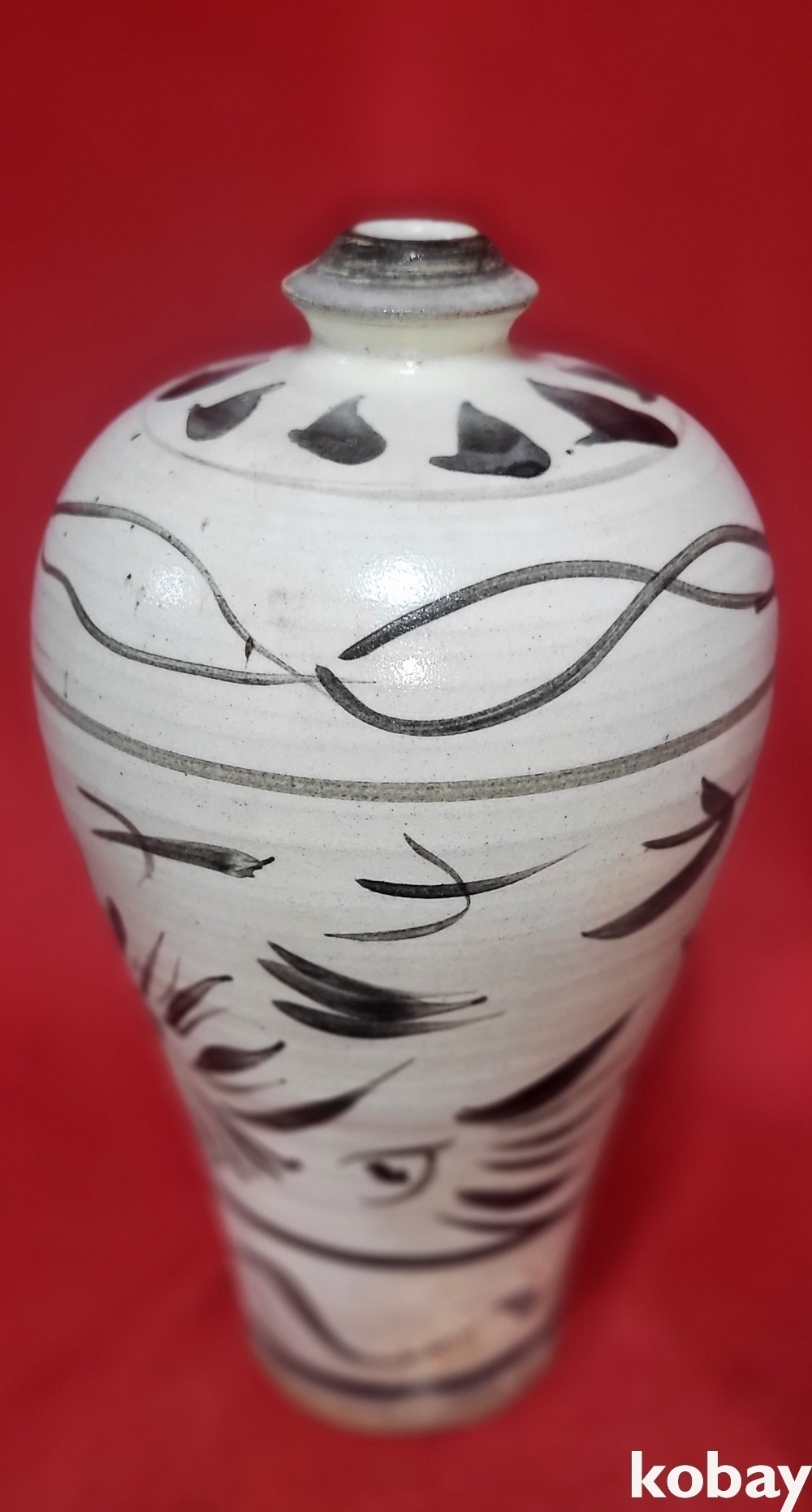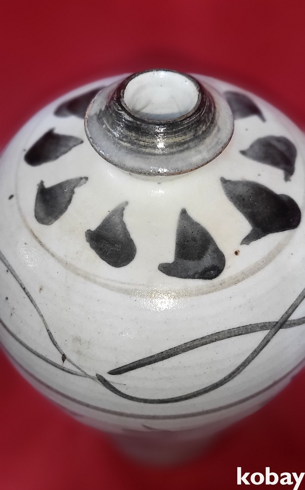 몸통에는 유약이 덜 발라진 곳이 보임니다,