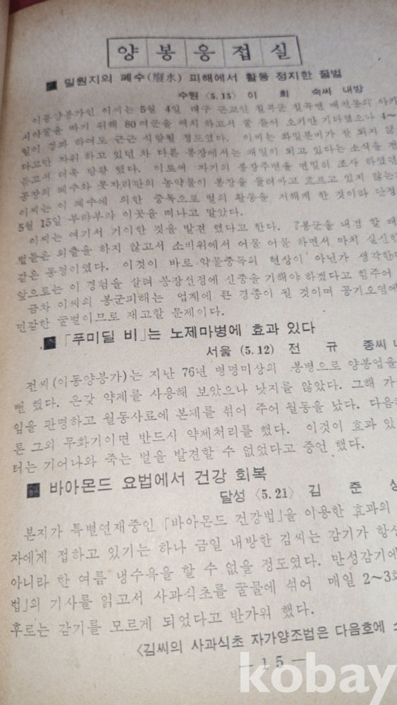 양봉업계의 뉴스와 성공과 실패한 사례등이 수되었읍니다,