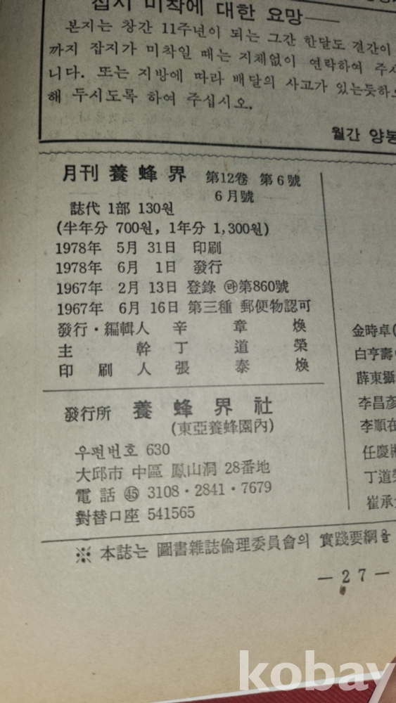 1978 년에 발행된 양봉계(養蜂界) 양봉계사 발행 6 월호입니다,