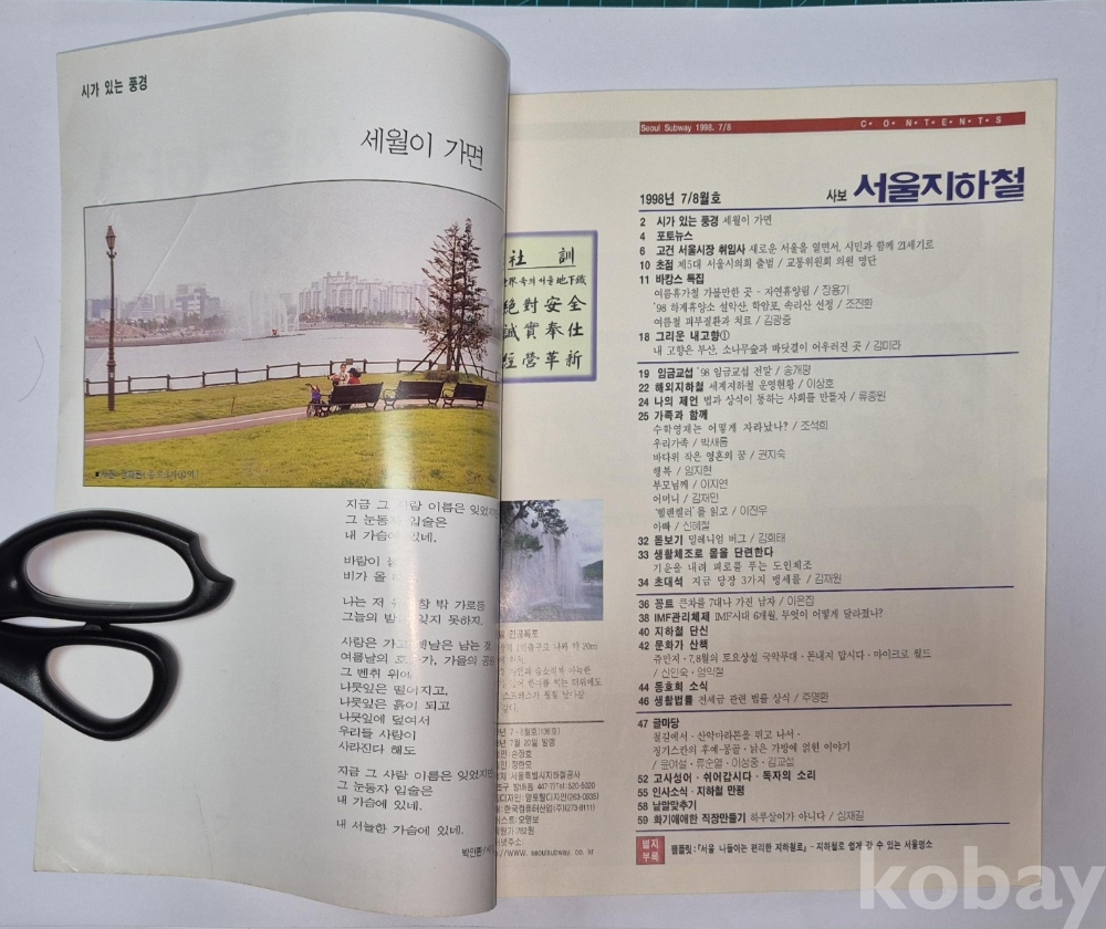 1998년 서울특별시 지하철공사에서 발행된 잡지 '서울지하철' 7/8월호 (통권 제136호) 입니다.