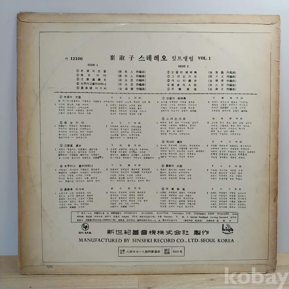 최숙자 (목포의 눈물 / 눈물의 연평도) 신세기레코드
