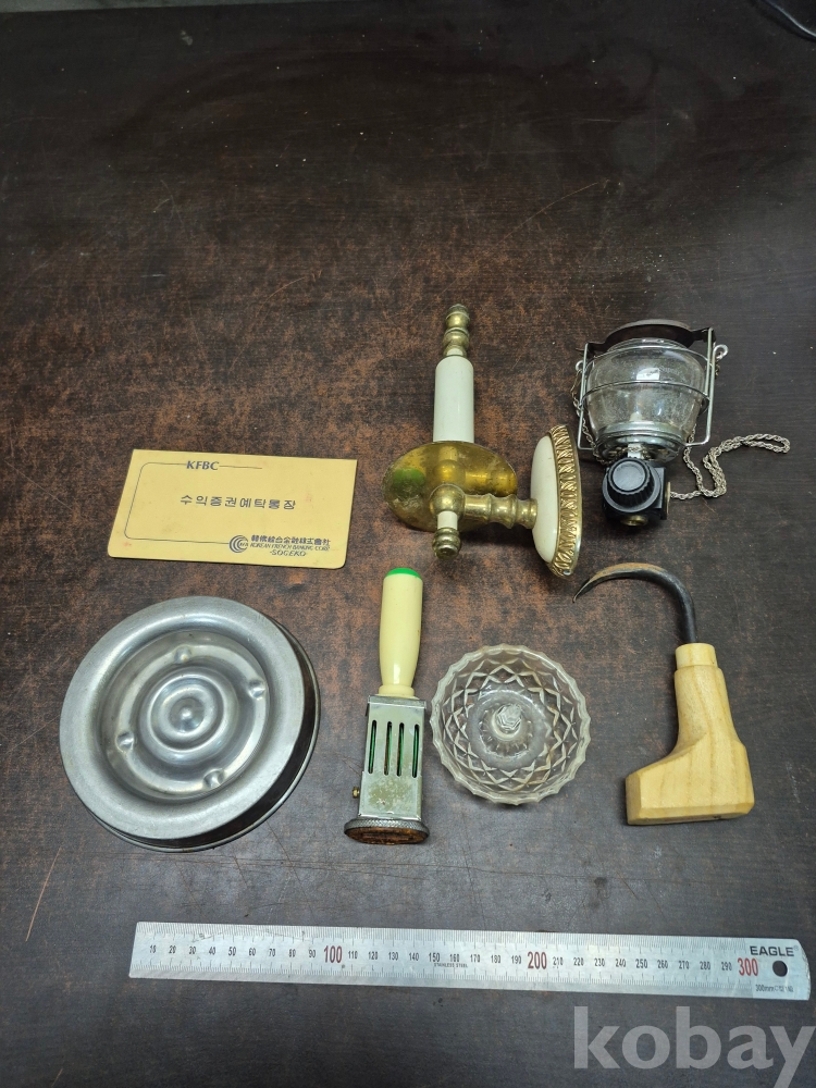 1980년대 다방 알리미늄재떨이 크리스탈 촛대 발송 스템프 동문손잡이 쌀가마드는 찍개 가스 램프 7점 일괄 14*14*2.5