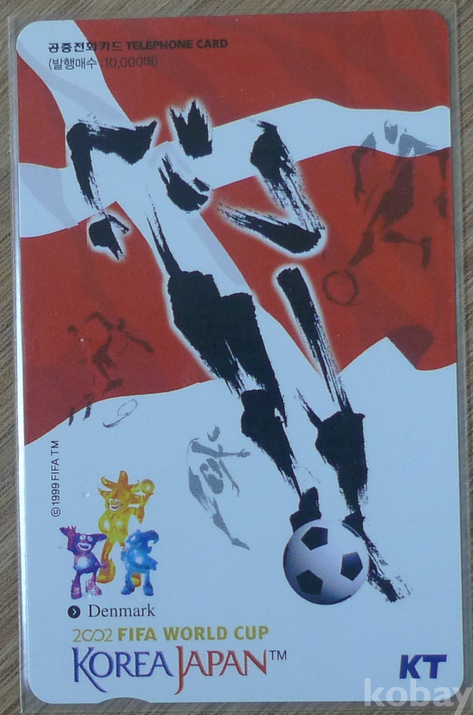 앞면 참가국 덴마크 국기와 2002한일월드컵 마스코트