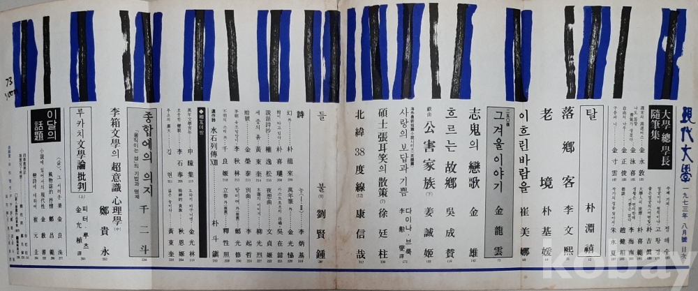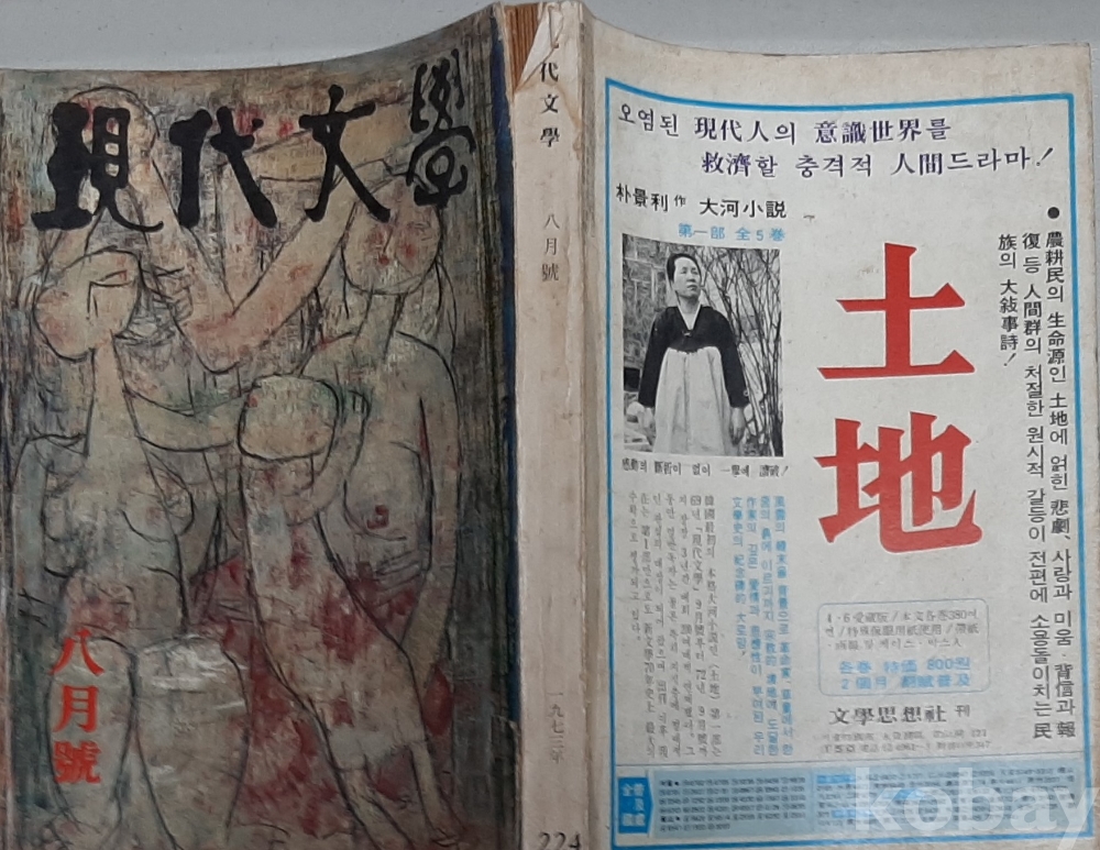 (별고)현대문학1973년8월호 NO224 표지 박항섭