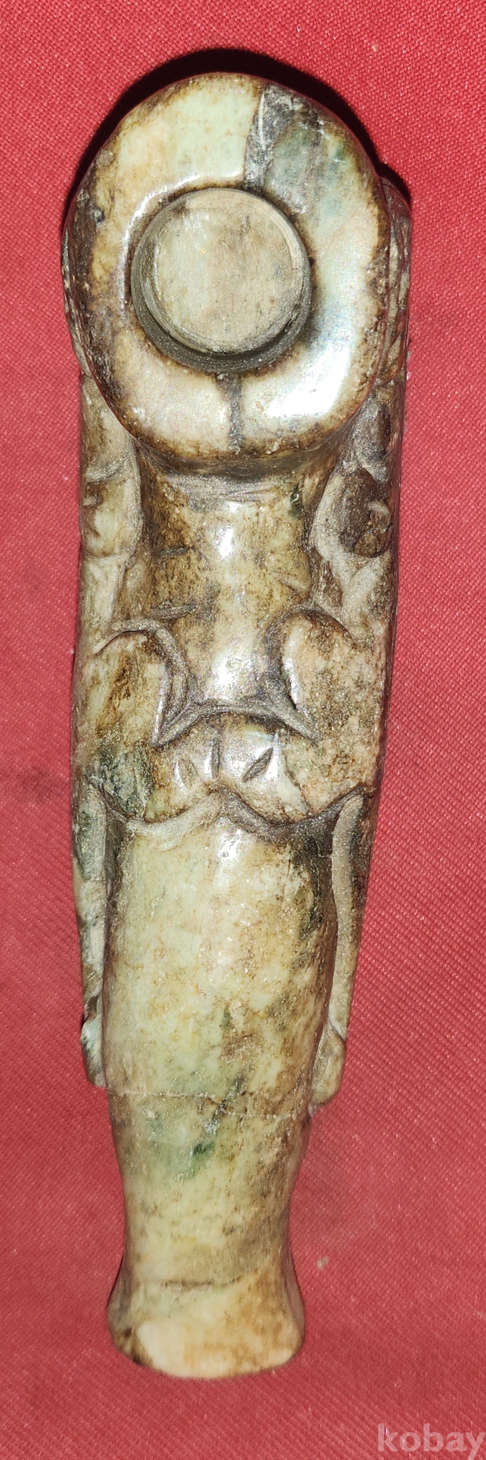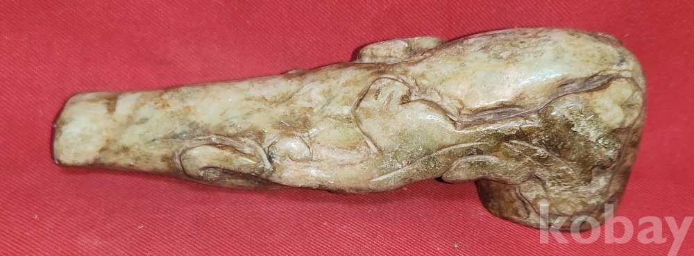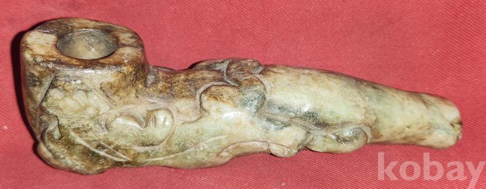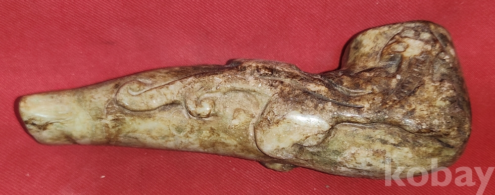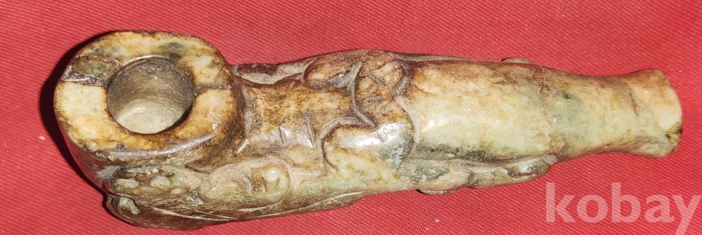 옥돌(玉石)로 완성된 쌍 도마뱀 양각 문양 담배 파이프입니다,