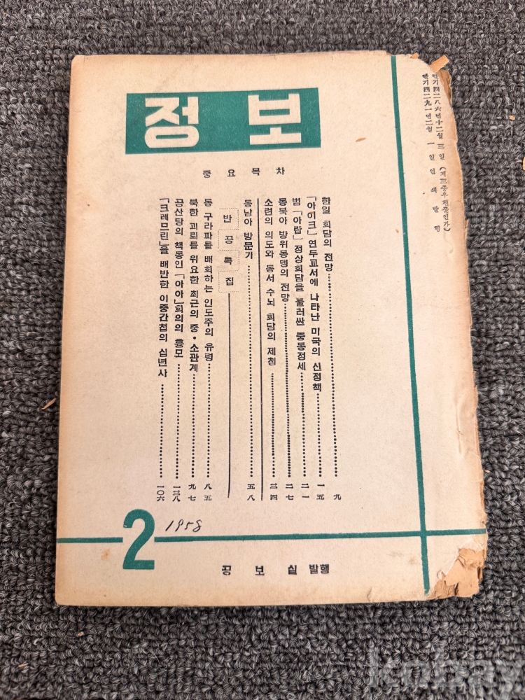 [희귀본, 한국현대사, 제1공화국] 공보실, <정보 1958년 2월호>, 공보실, 단기 4291년 2월 1일, p.198, 상태 하급(사진참조)