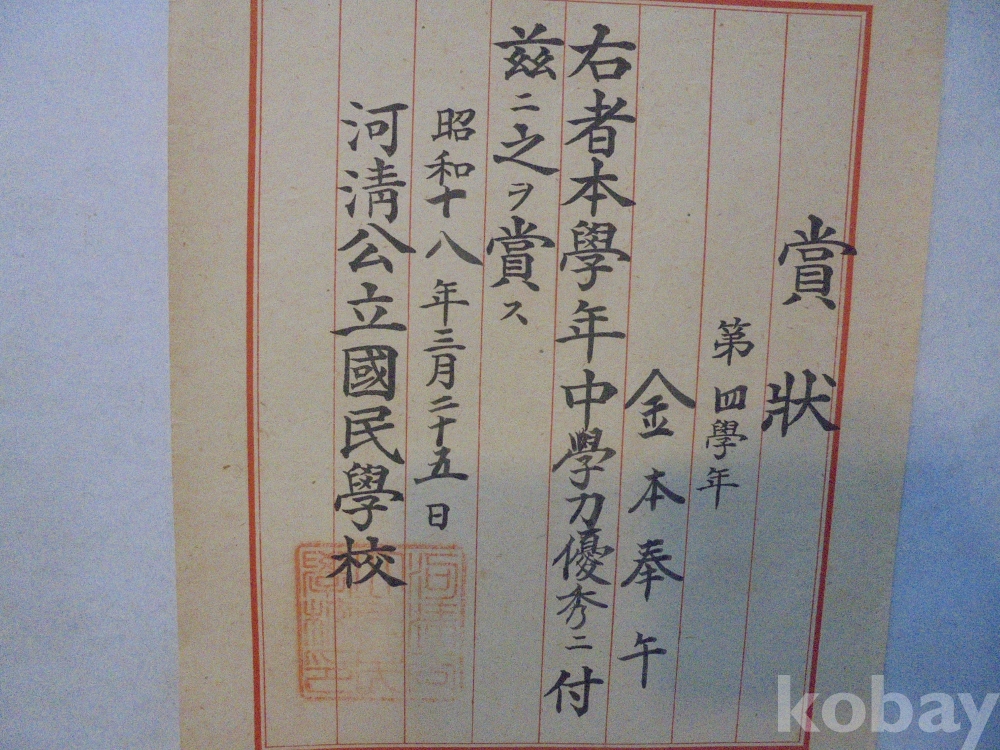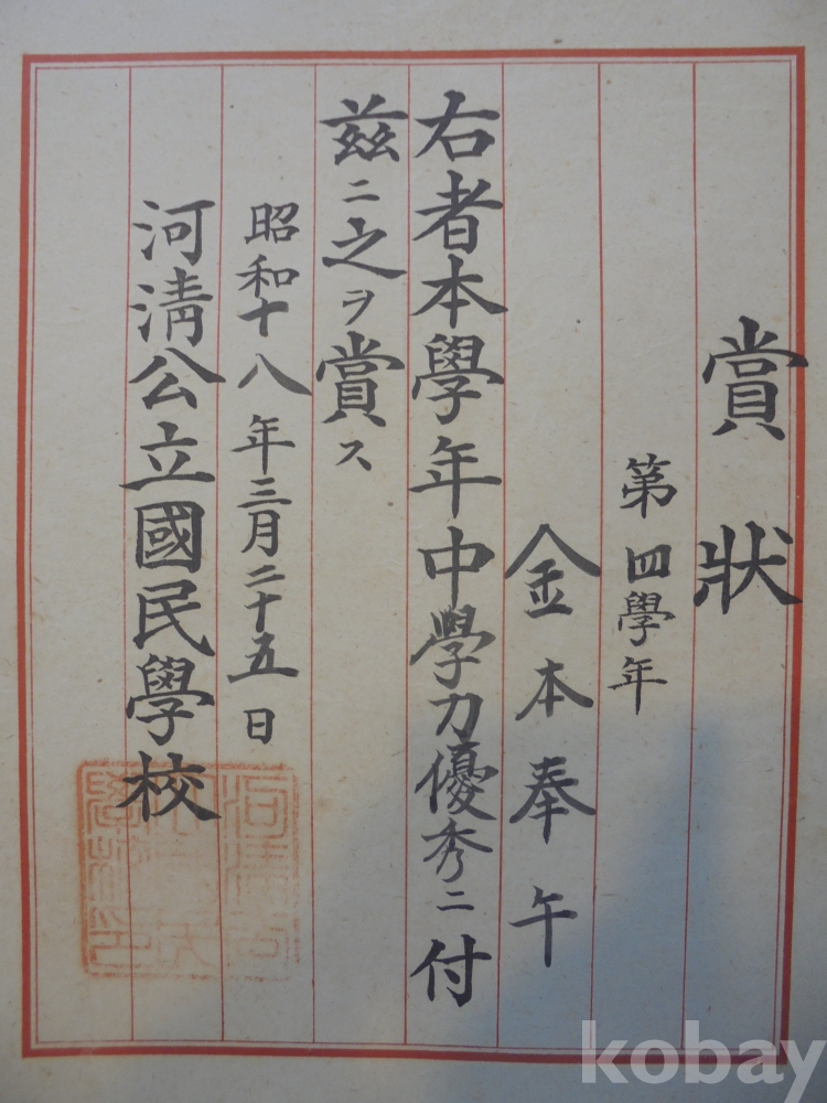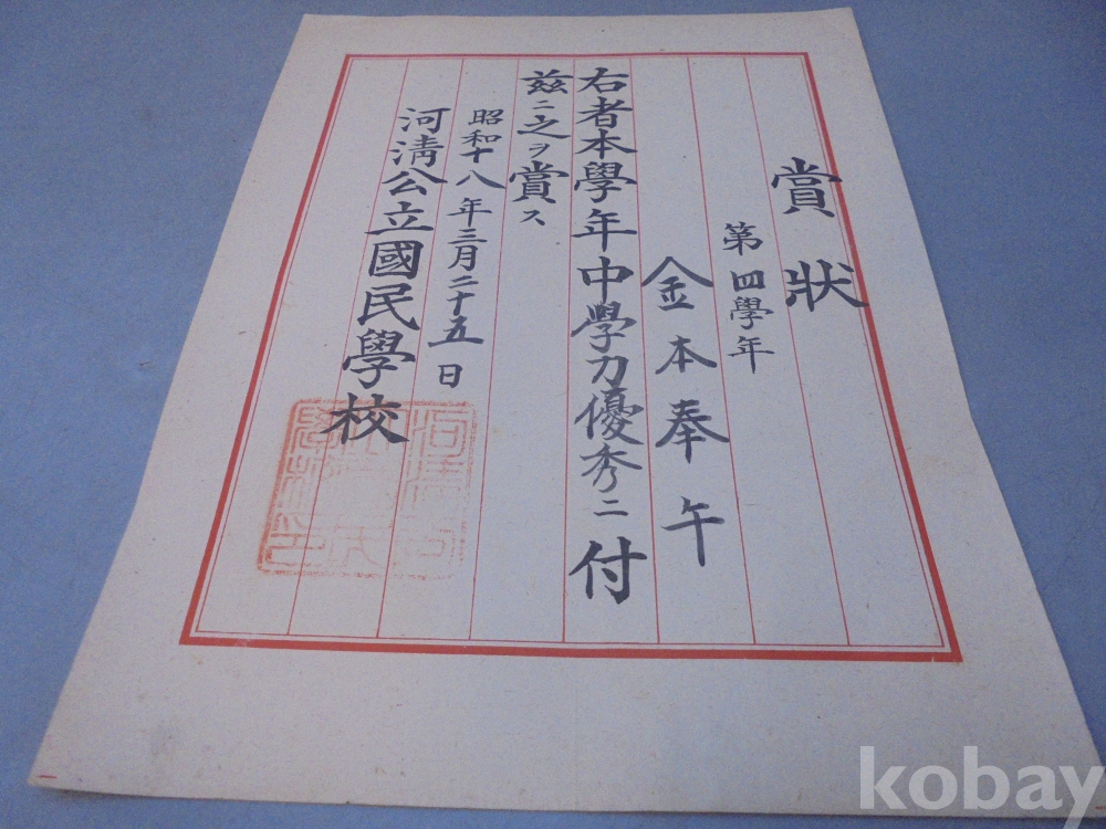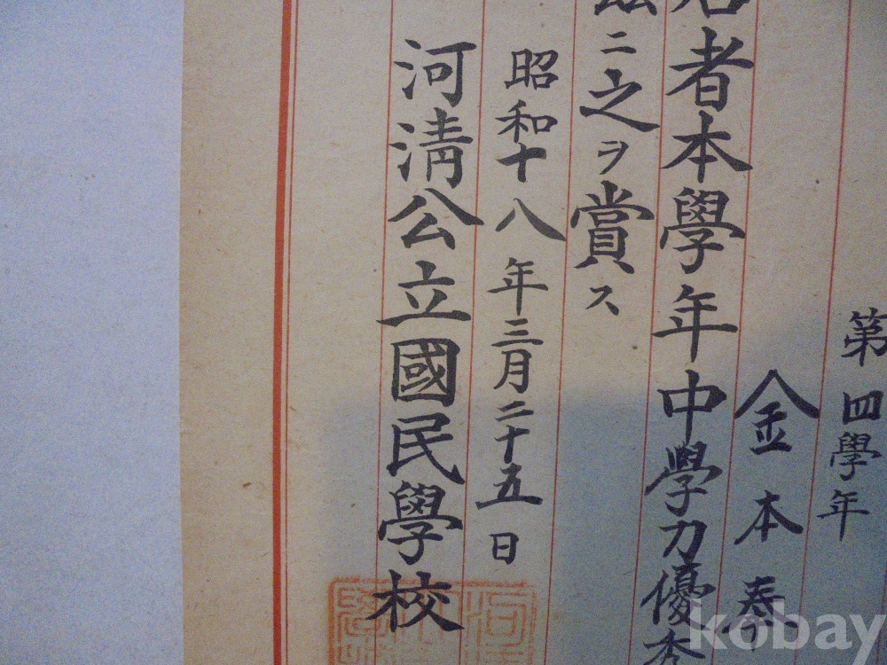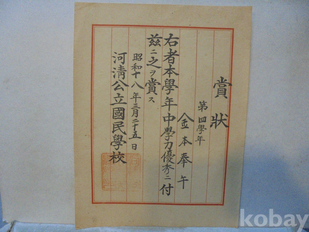 1943년 하청공립 국민학교 제 4 학년 상장 ( 희귀 근대사 )