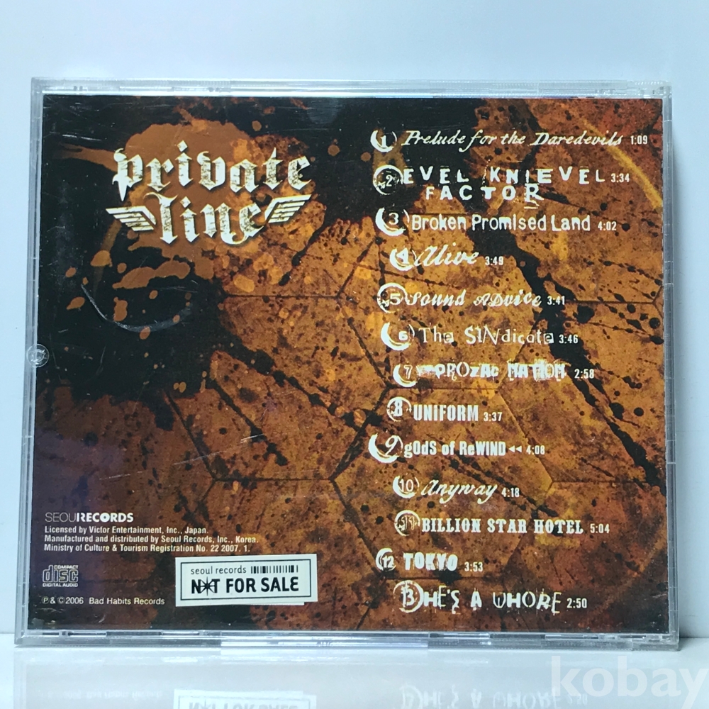 CD 8,100-43 Private Line – Evel Knievel Factor 자켓 : 실사 디스크 : 사용품 깨끗 2007 국내