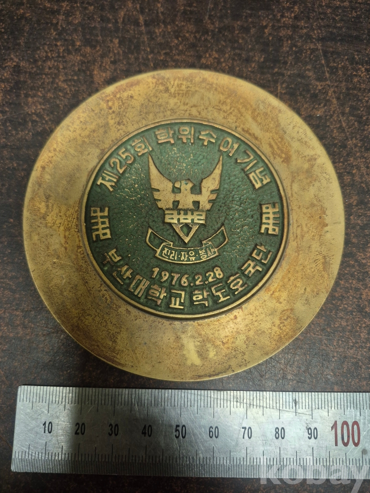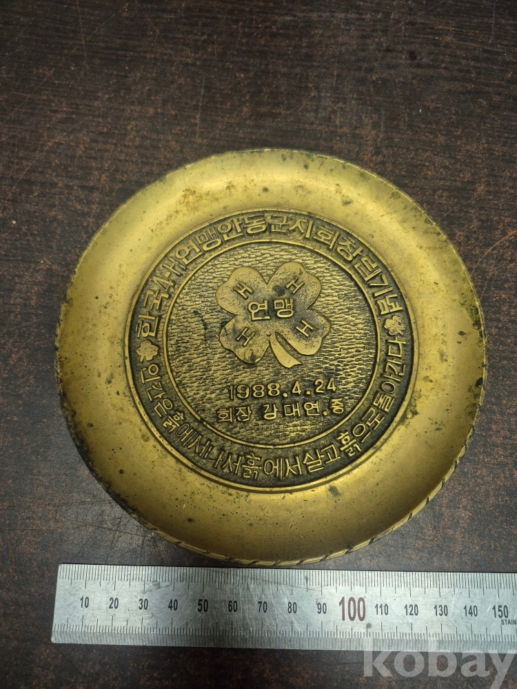 동으로 제작된 통일 전망대 방문기념 관광기념품 1982년 정우개발주식회사 설립 10주년 기념 재떨이 부산대학교 학위수여기념패 1점 국민대학 졸업기념 재떨이 한국 4H 연맹안동군지회 창립기념 동패 5점 일괄