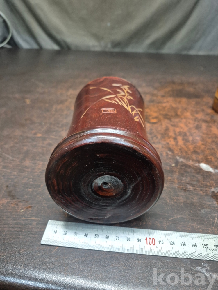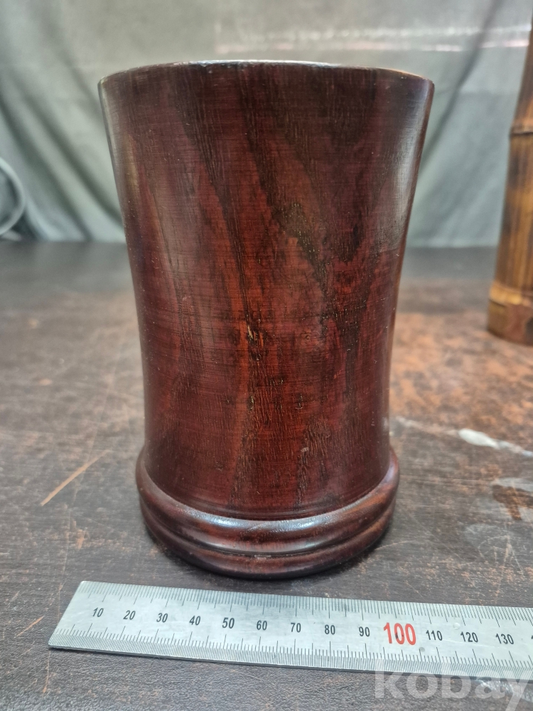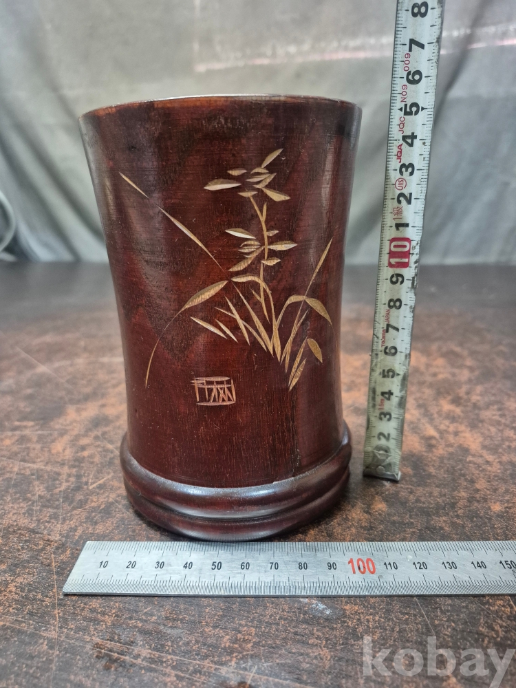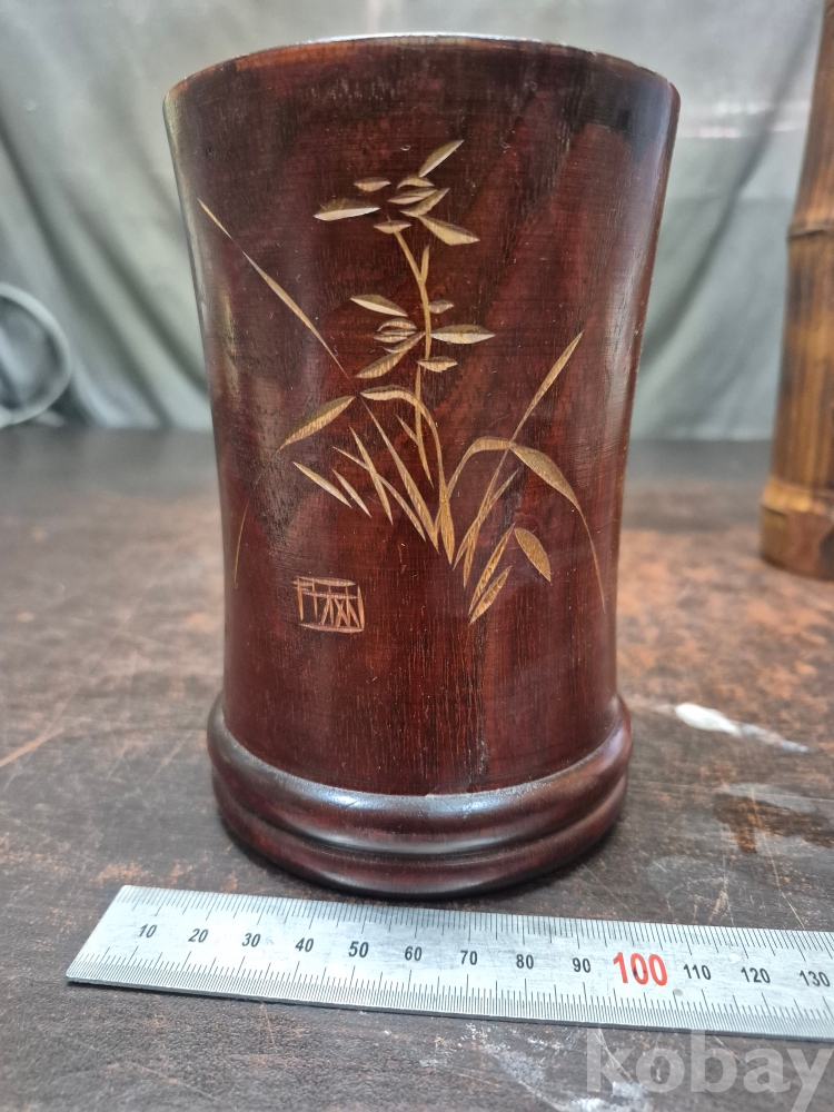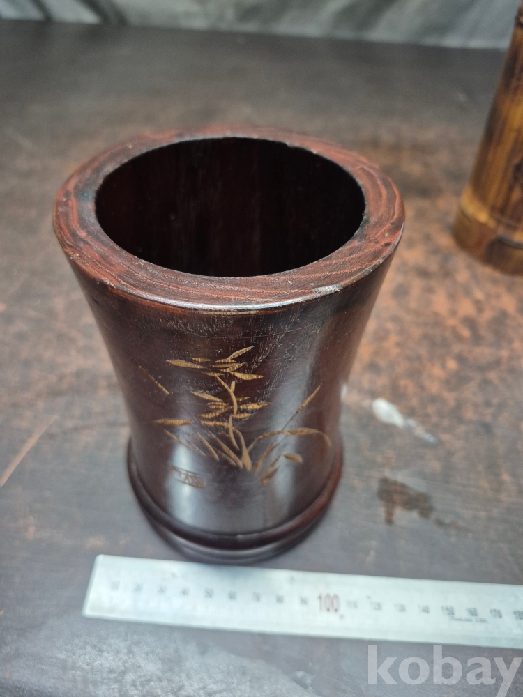 고목으로 만든 난을 깍아 만든 필통 1점과 대나무로 만든 송학과 사슴을 깍아 만든 필통 2점 일괄 10*10*15
